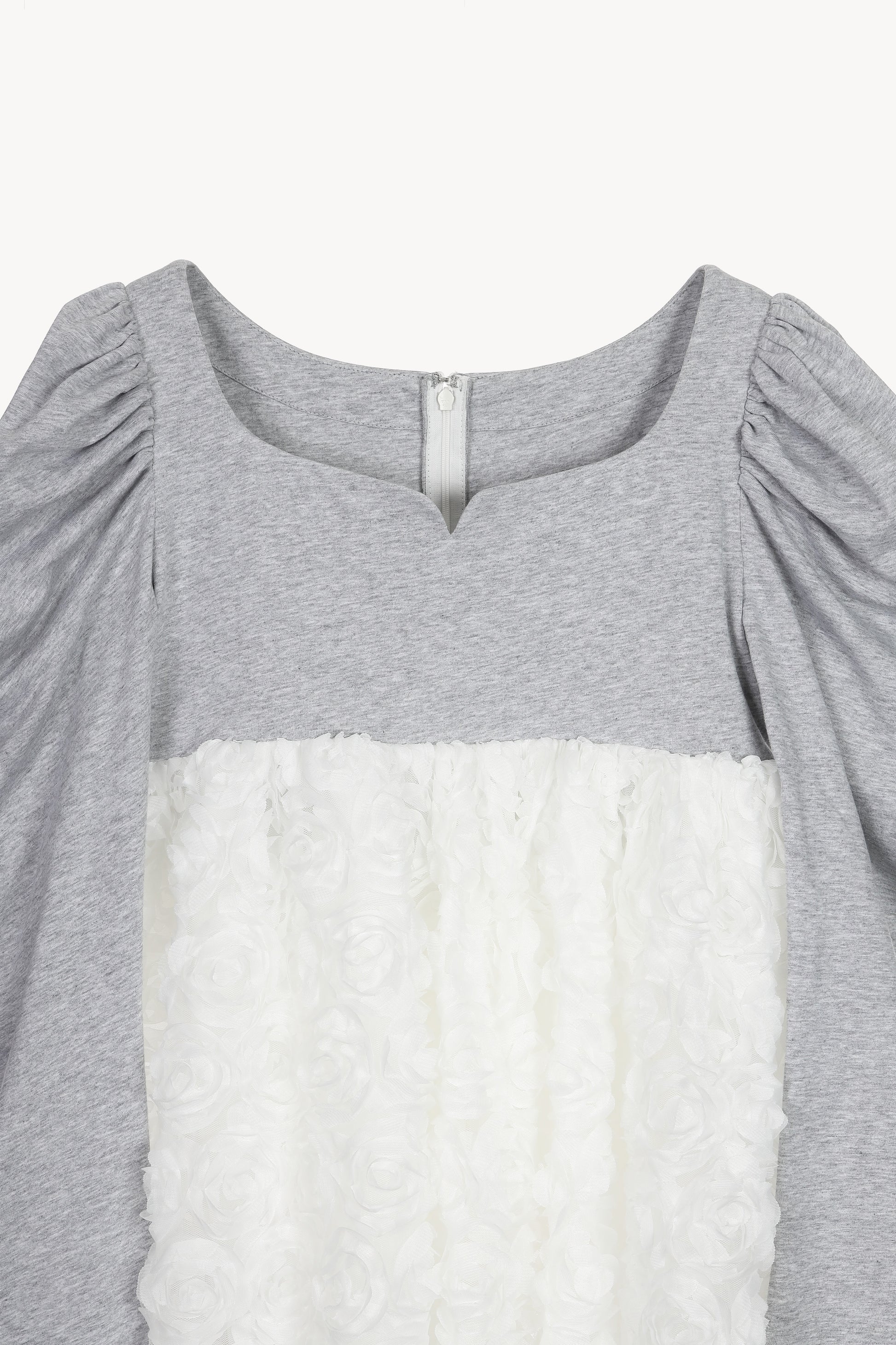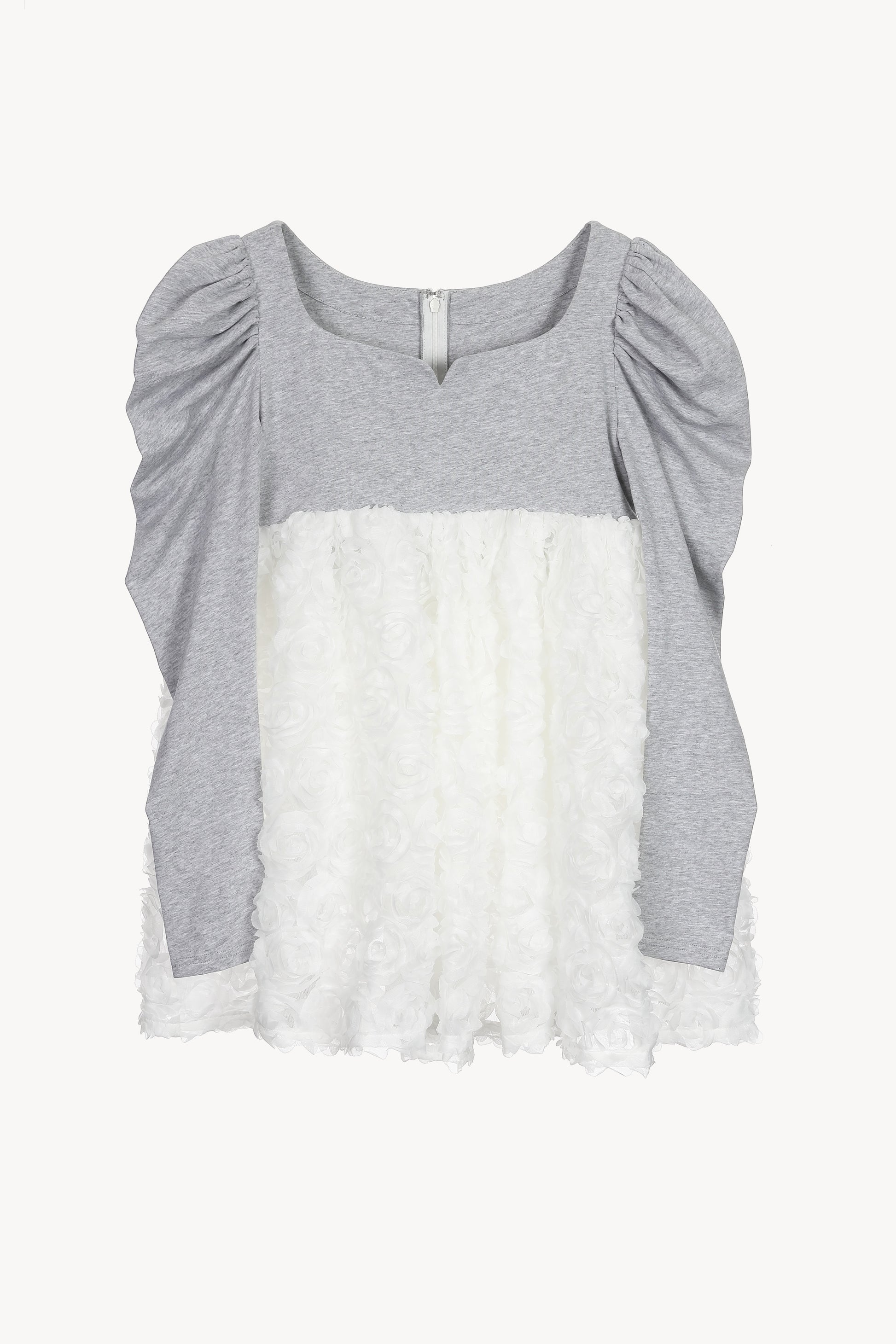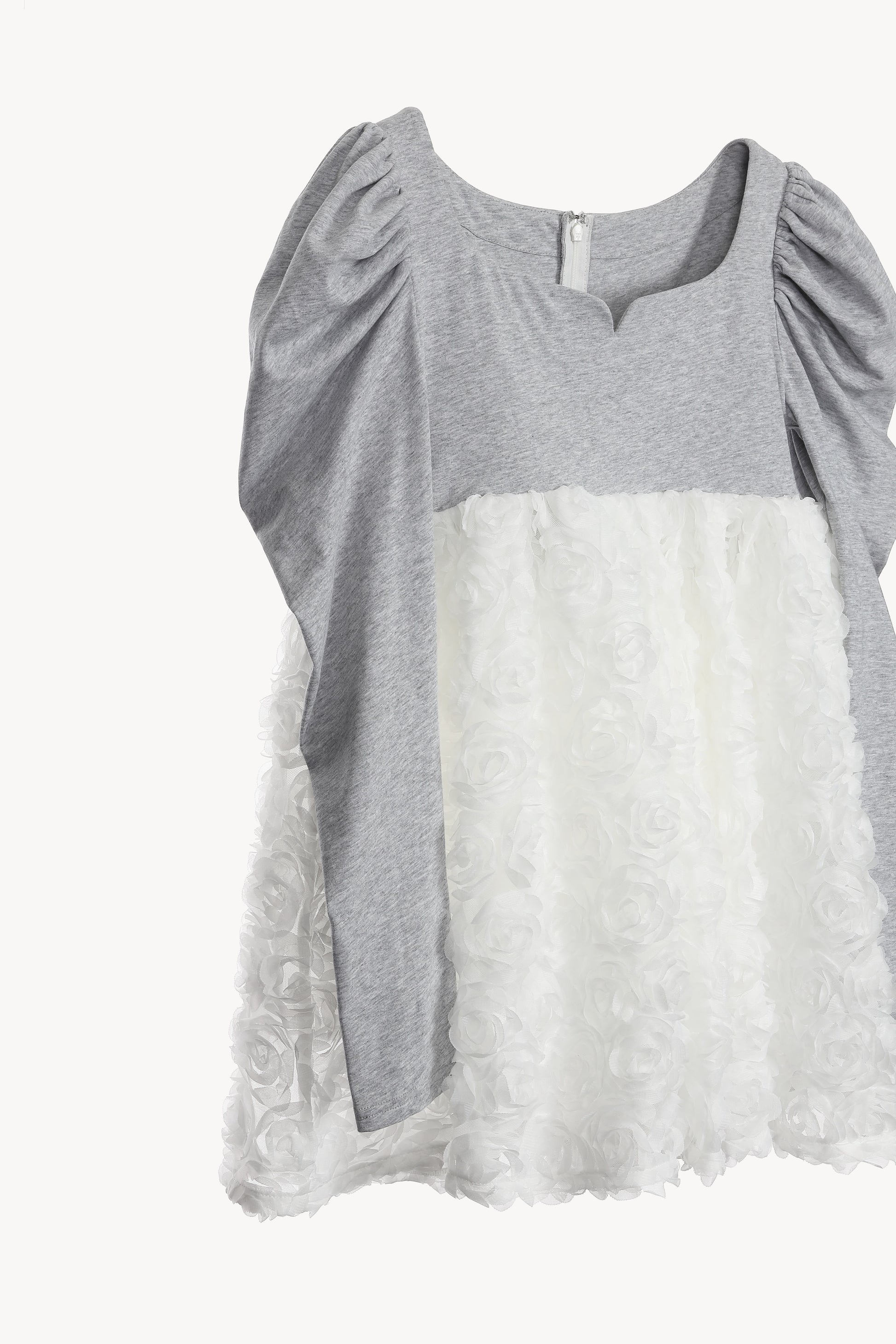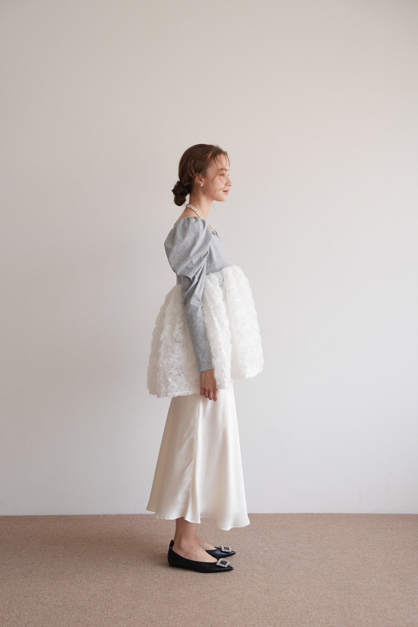 裾には立体感のあるフラワーチュールを贅沢にあしらい、