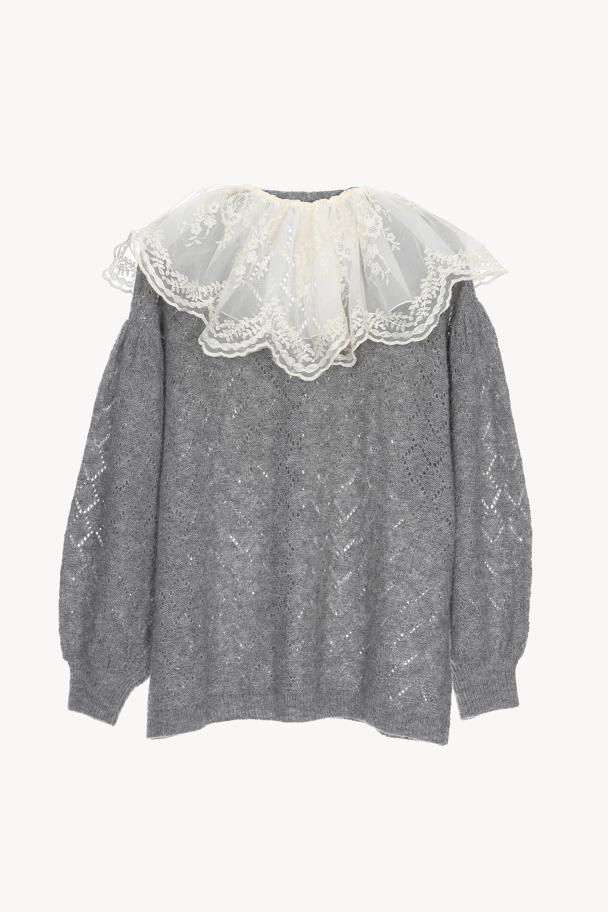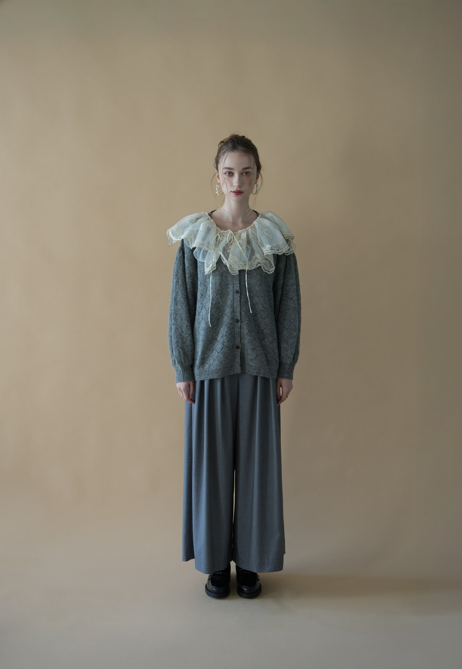 繊細なレースのつけ襟と、
