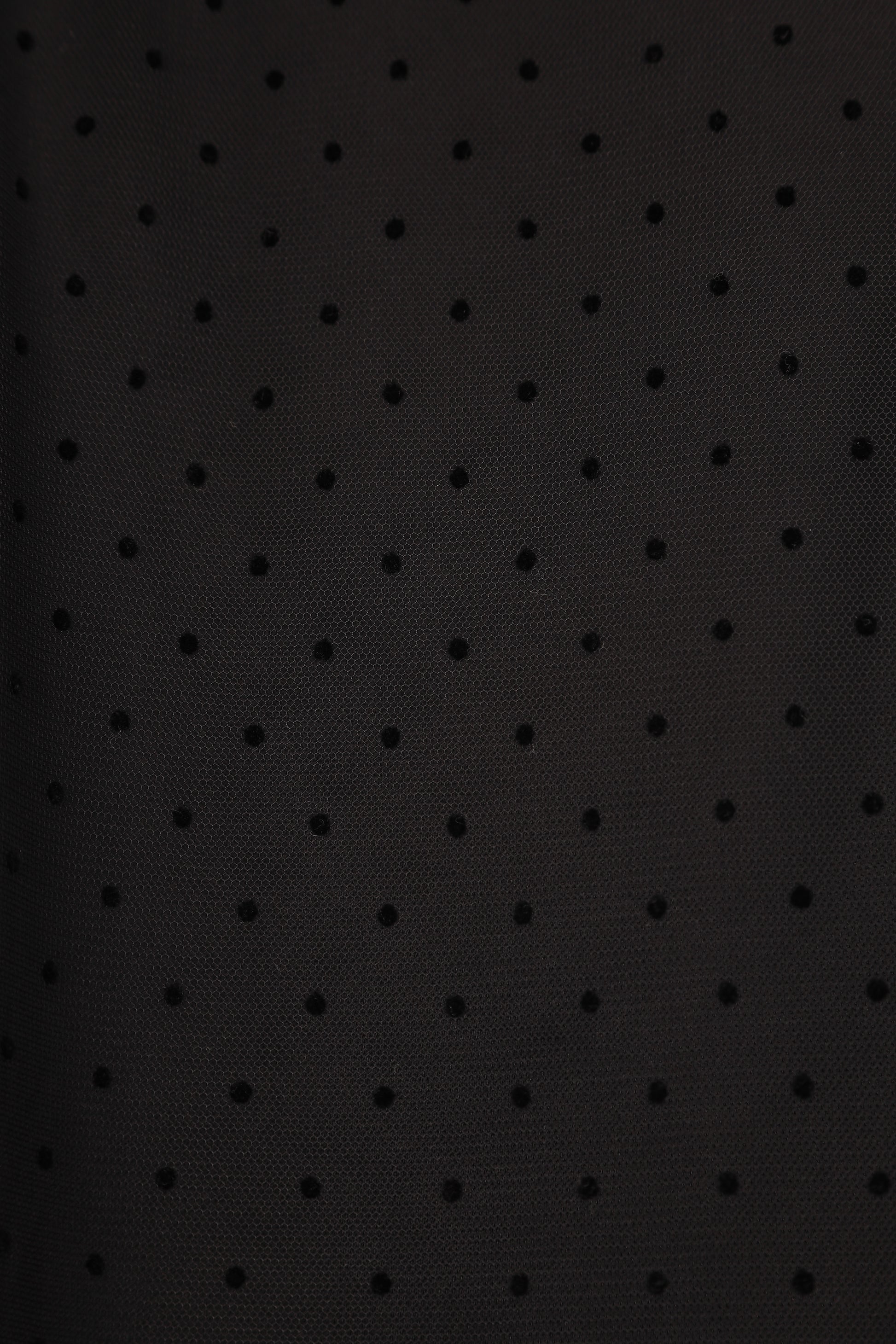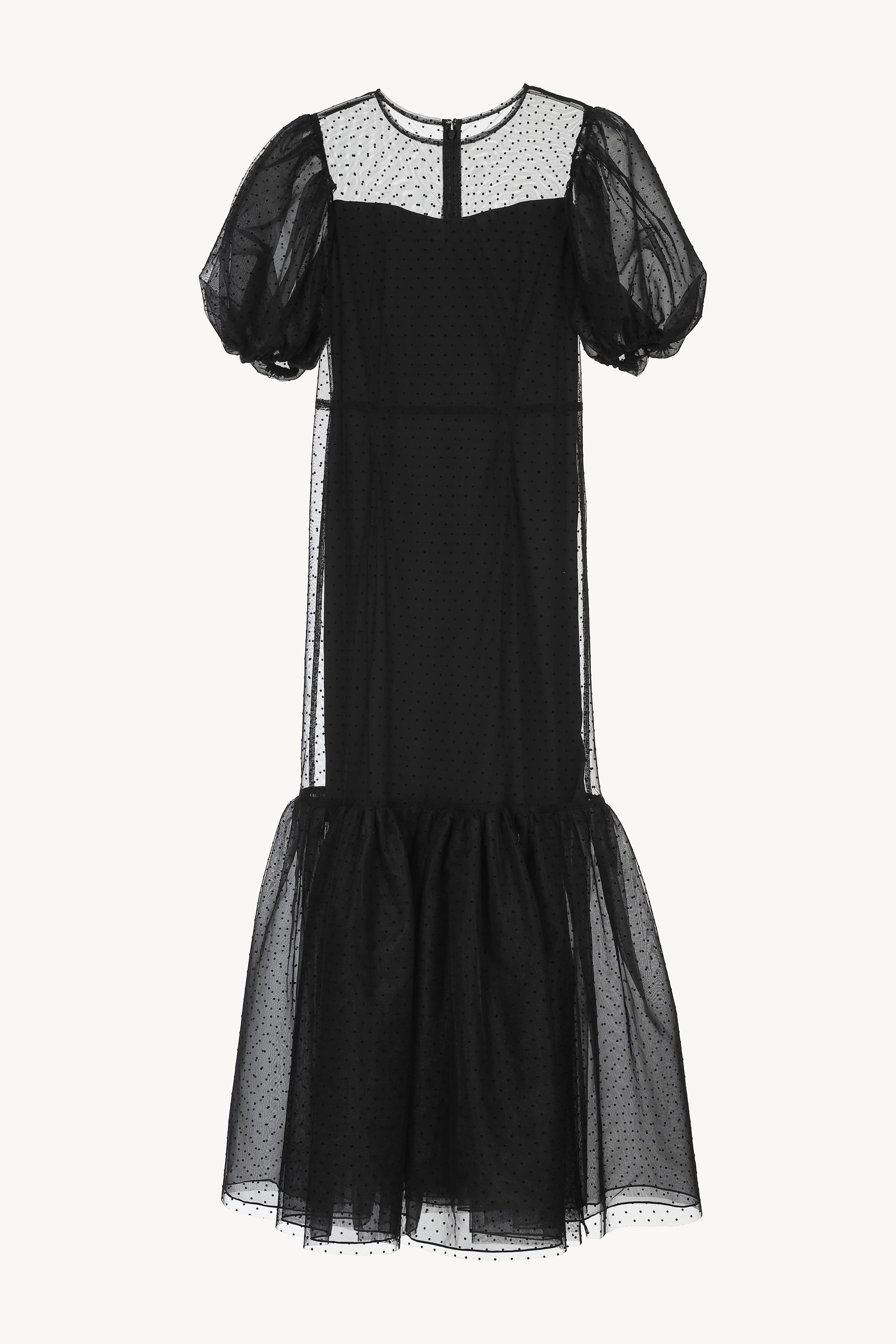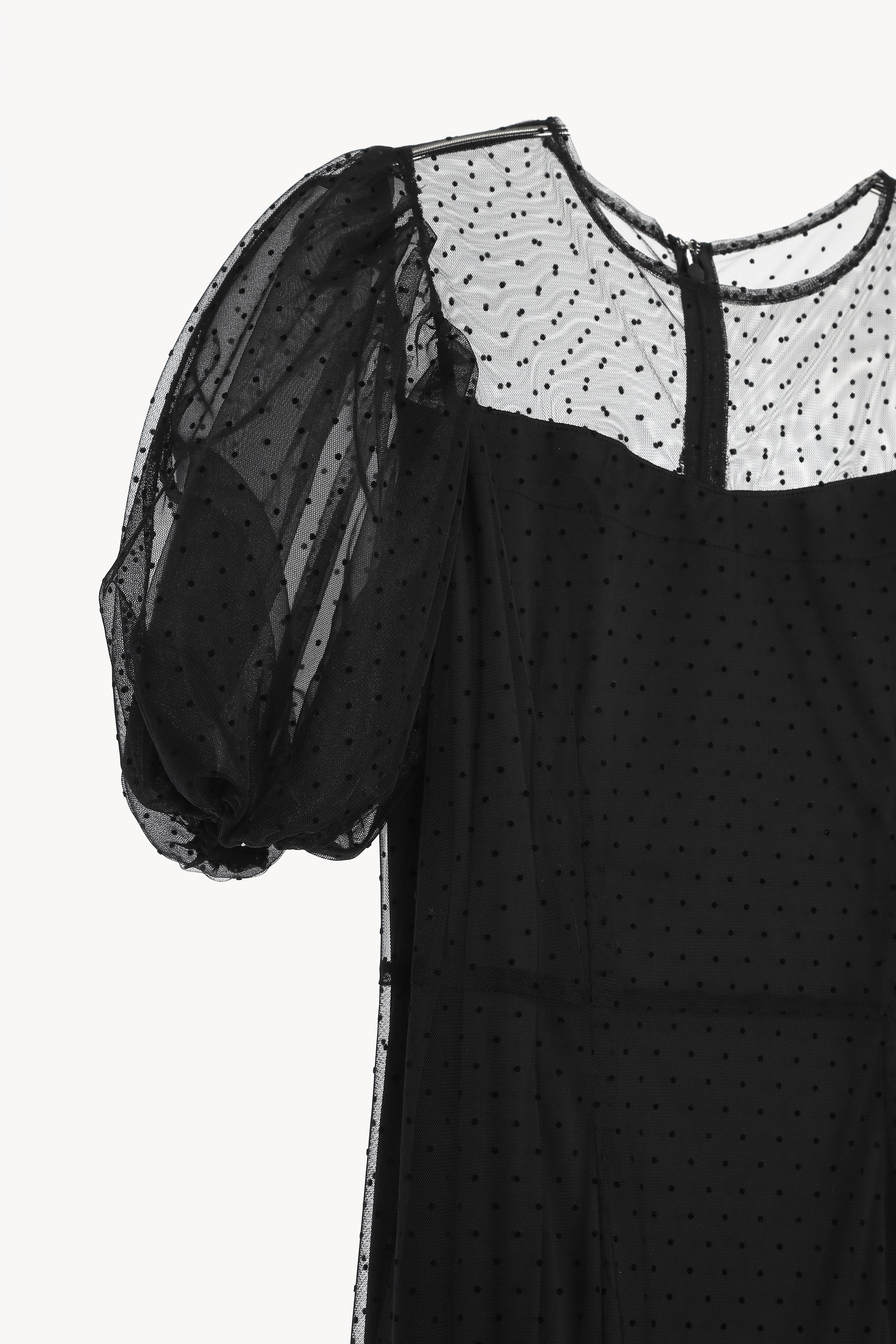 胸元から袖、裾にかけて重ねたチュール素材が、