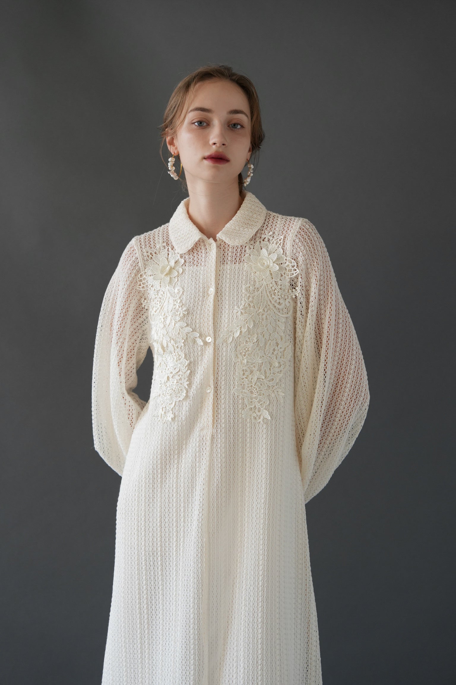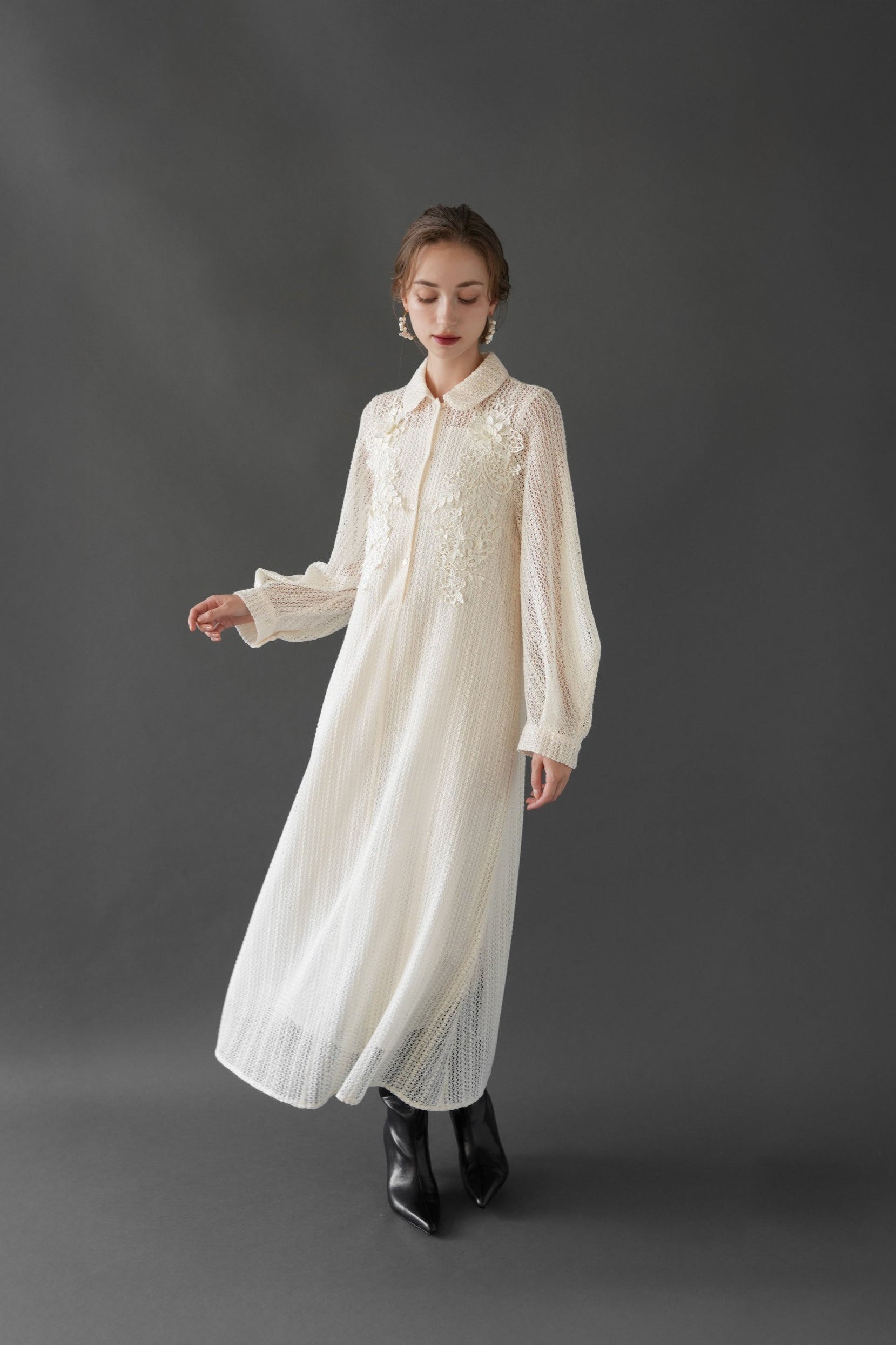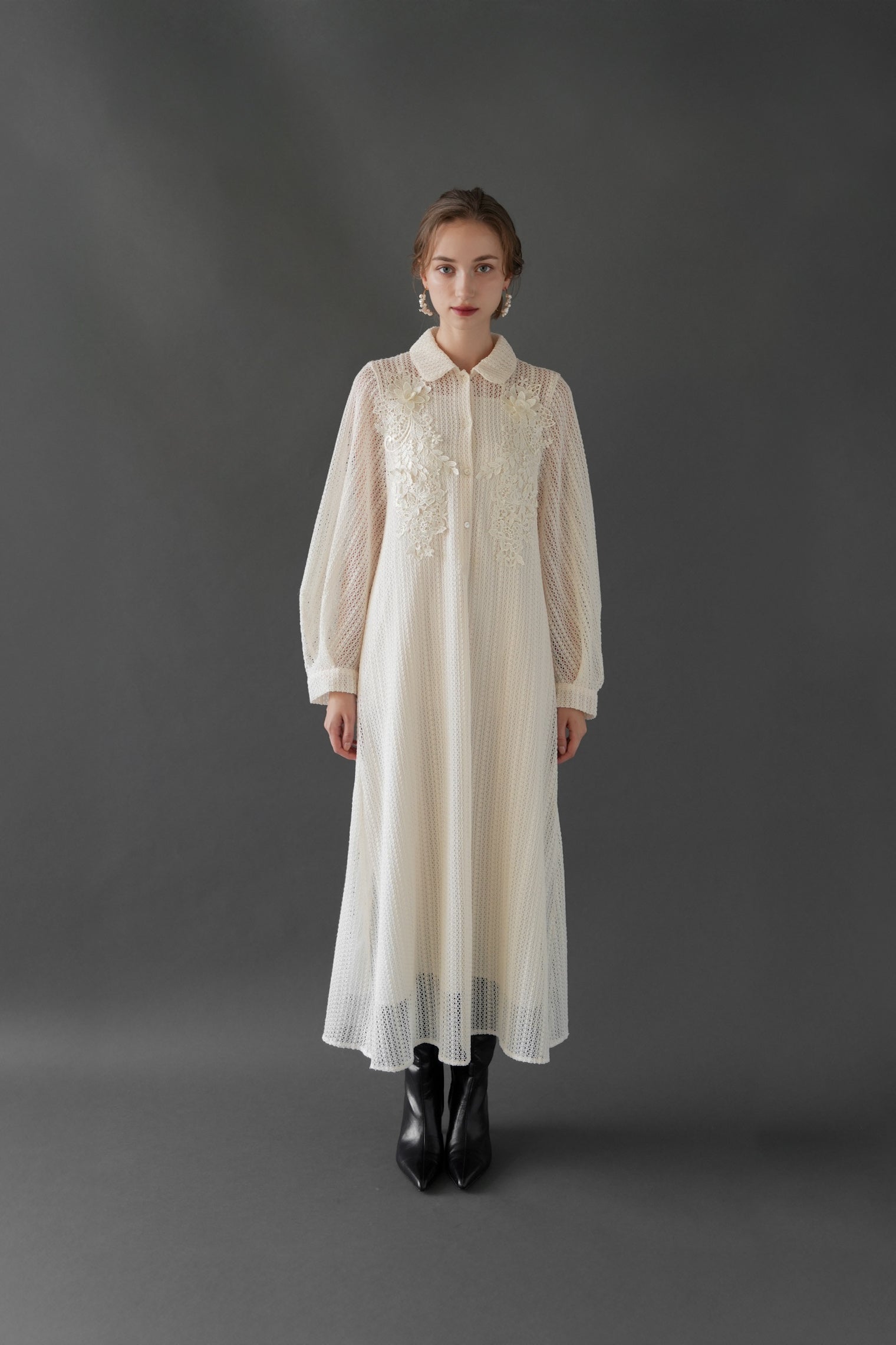 透け感のあるメッシュ素材を使用したロングワンピース。