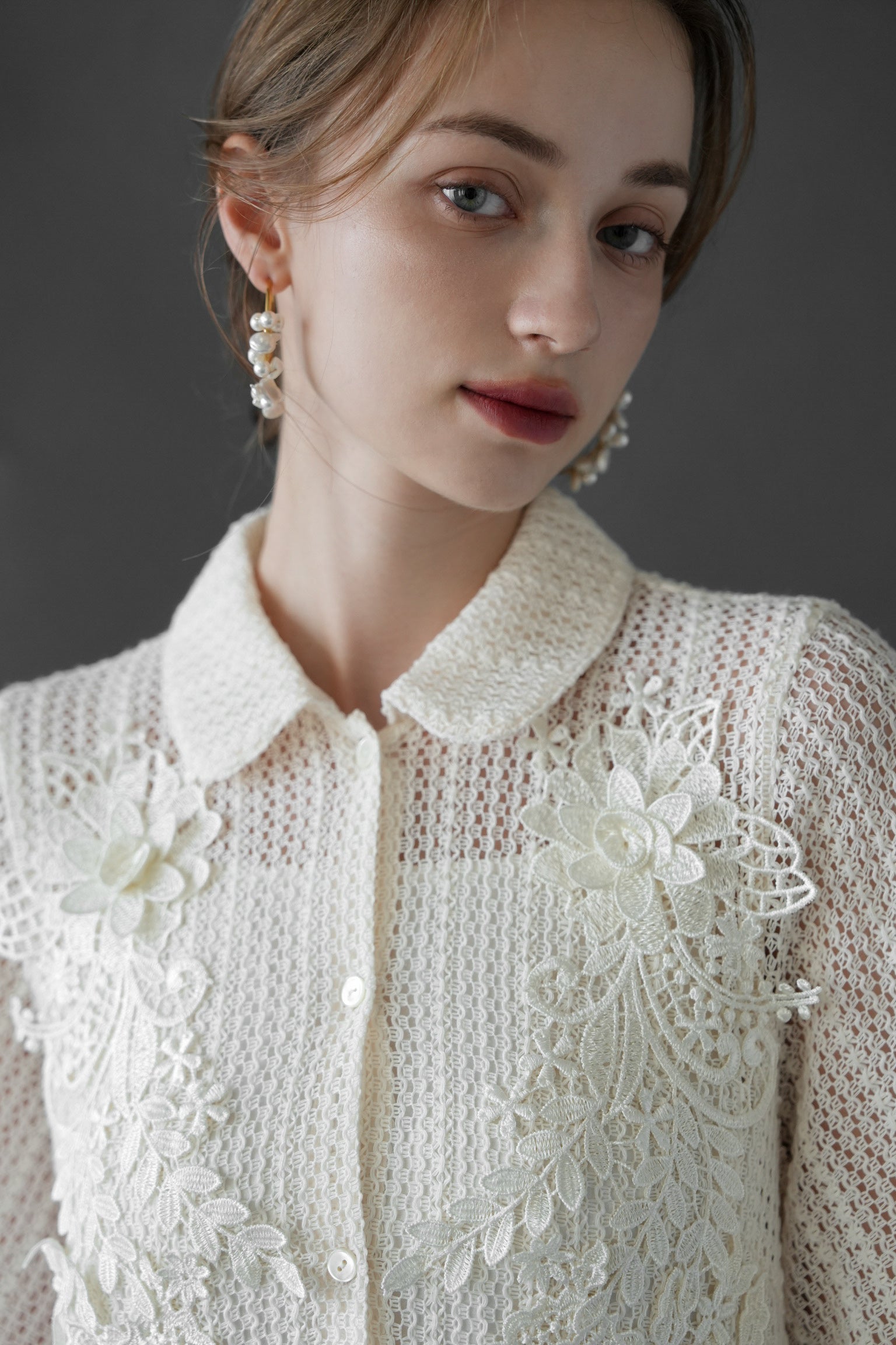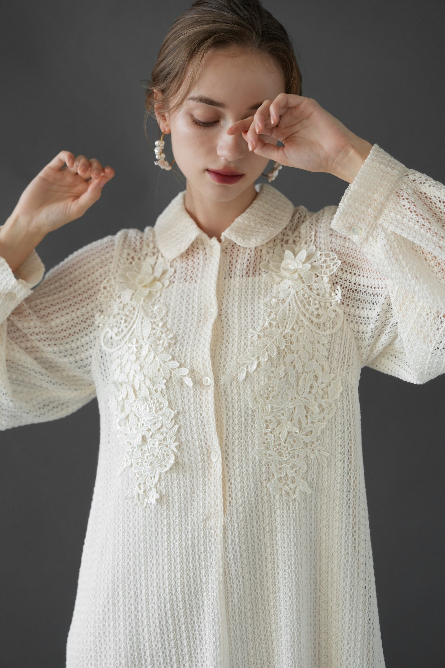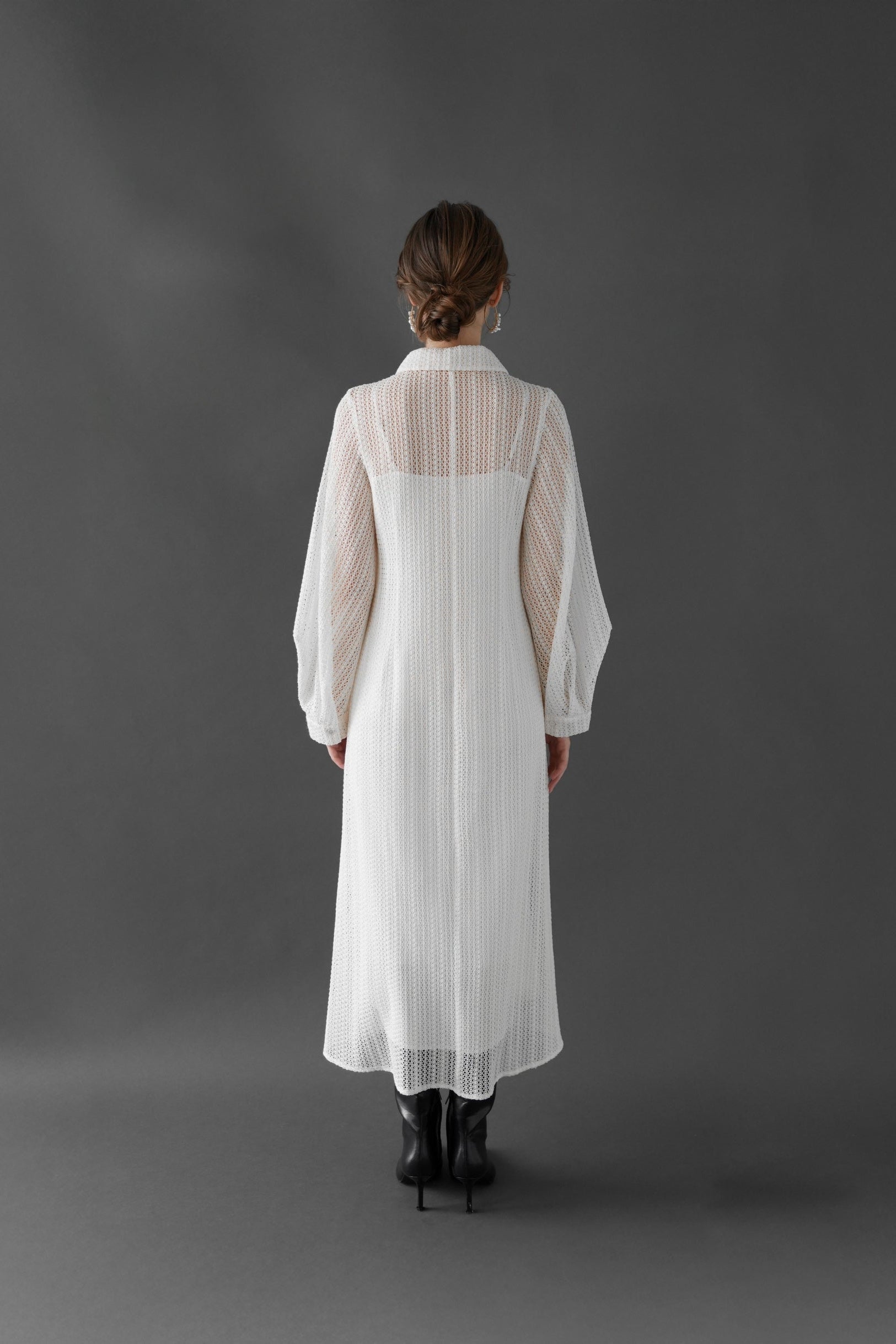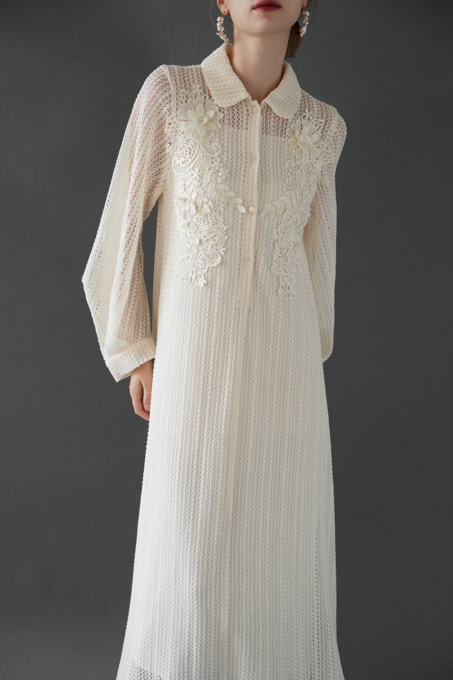 透け感のあるメッシュ素材を使用したロングワンピース。