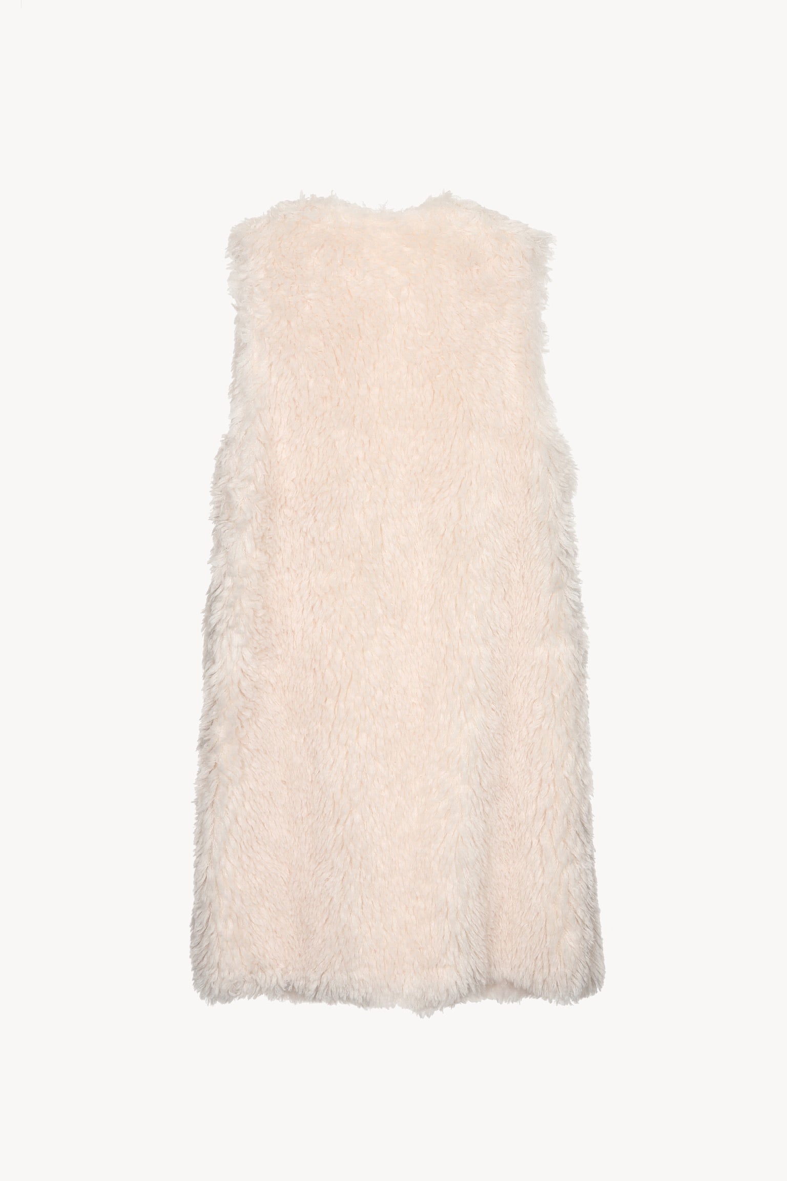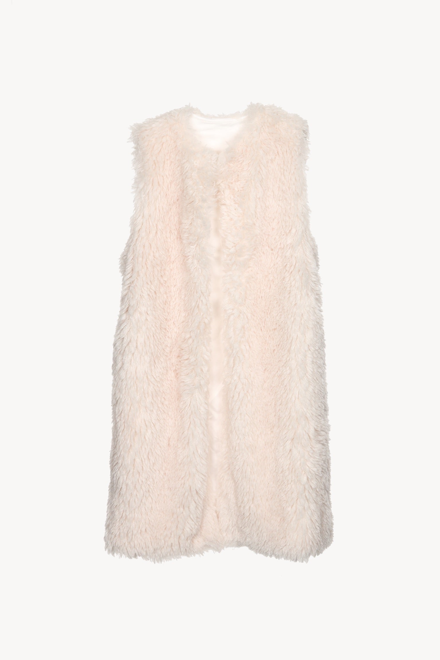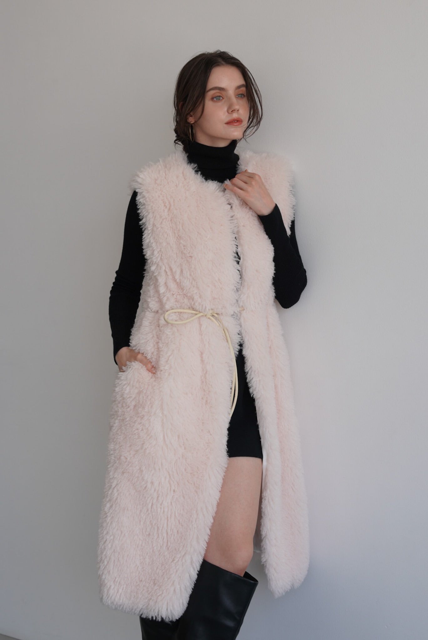 ロング丈で大人な印象で着られるファーベスト。