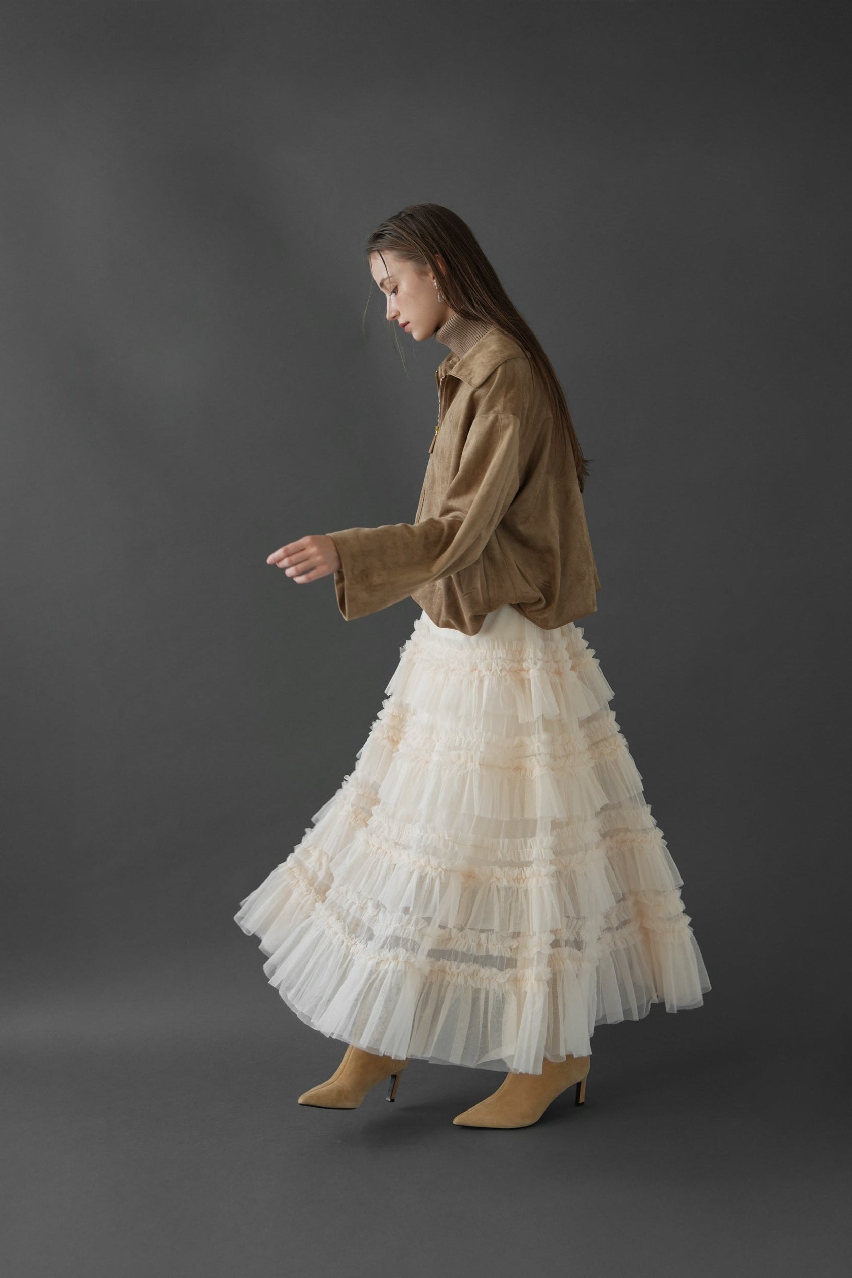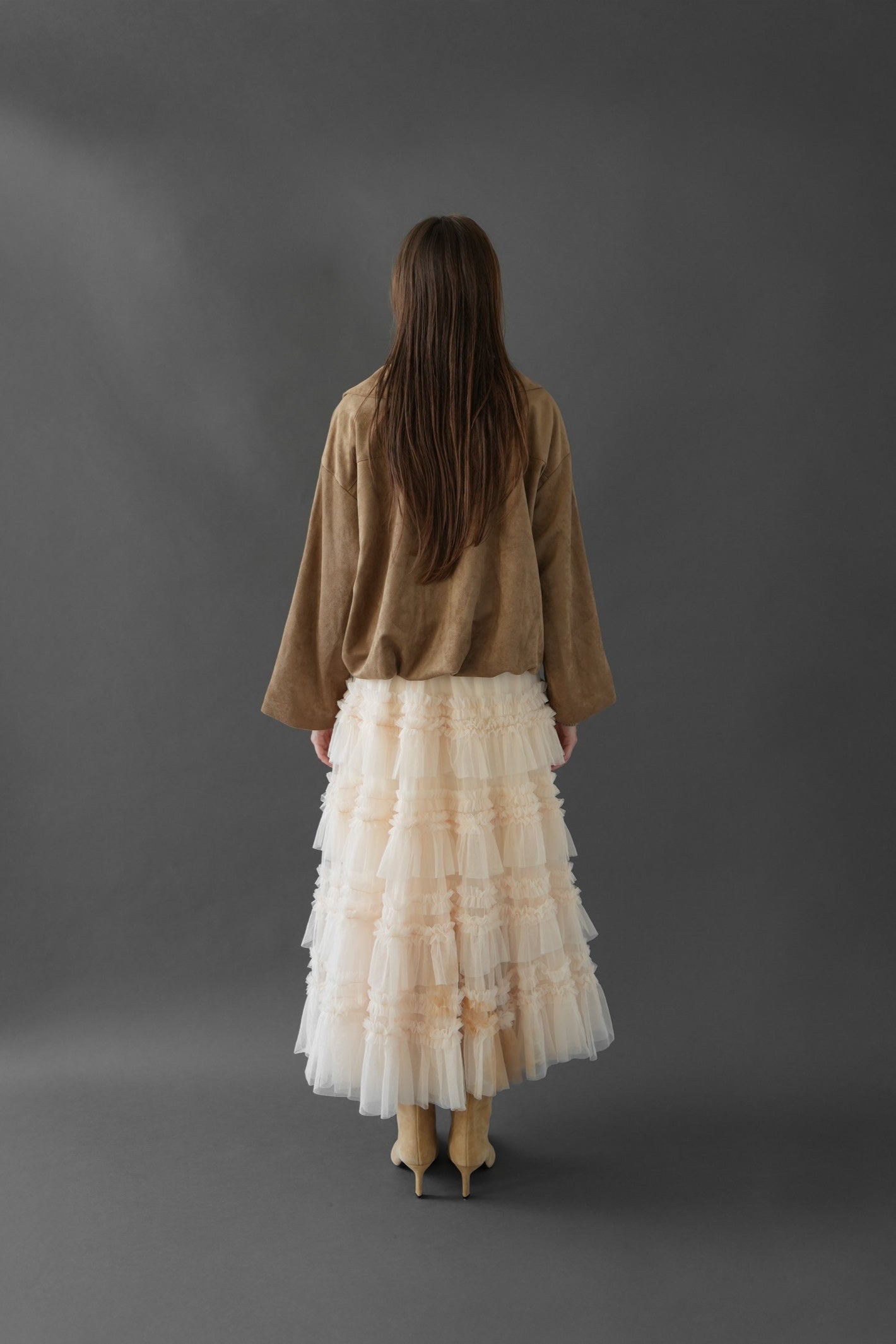 ゆとりを持たせたシルエットと直線的な切り替えが、