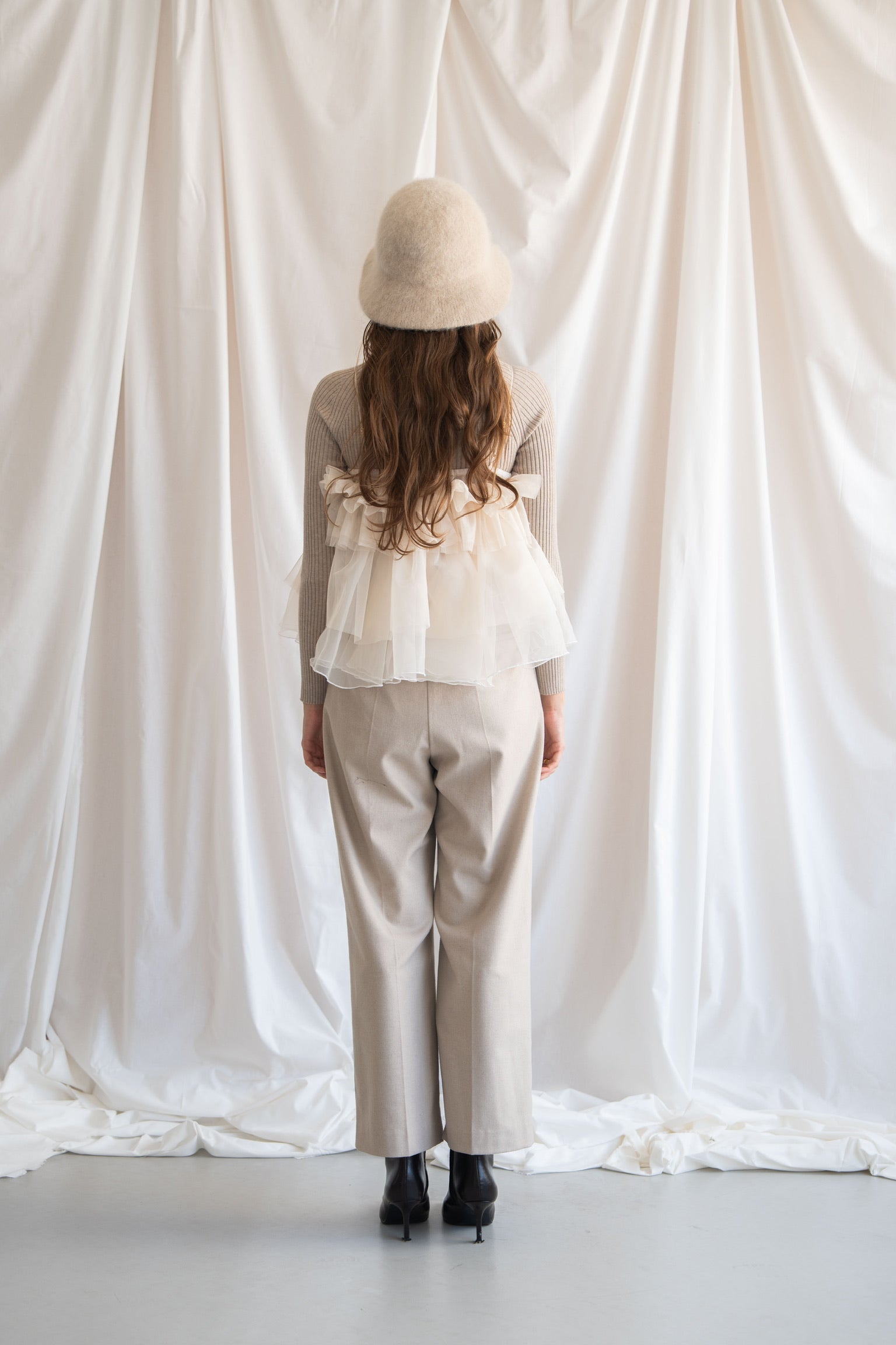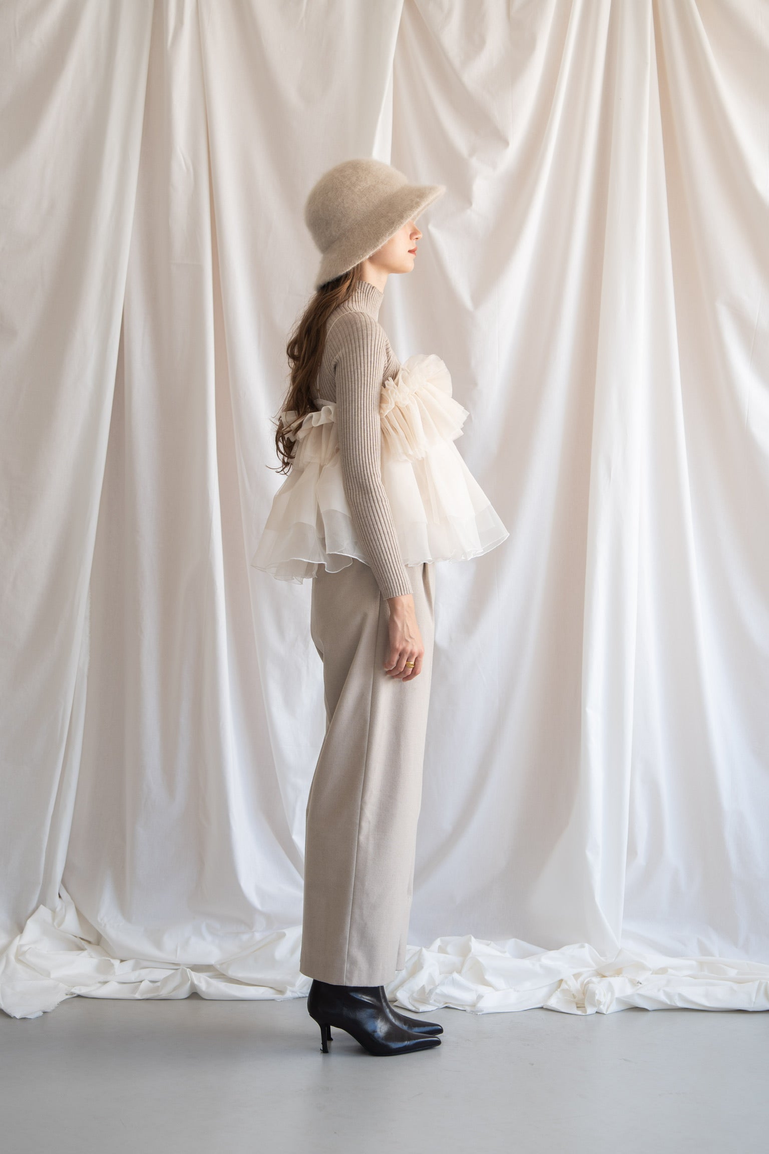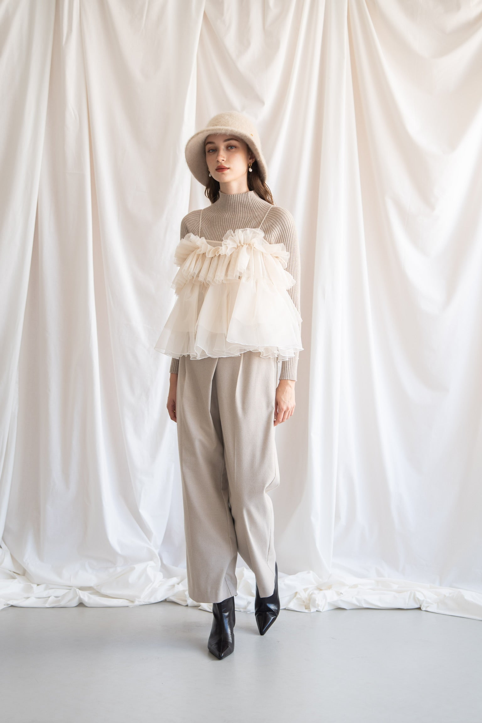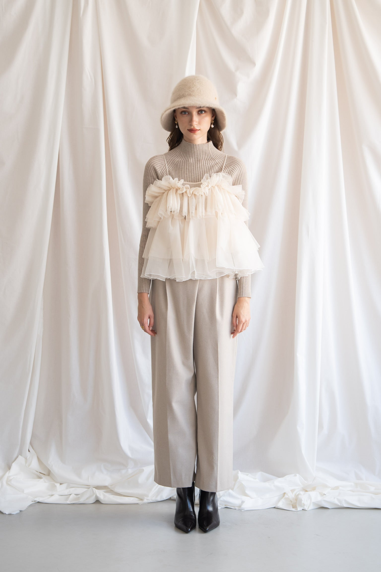 モード感とフェミニンさを兼ね備えたスタイルが完成する一枚です。