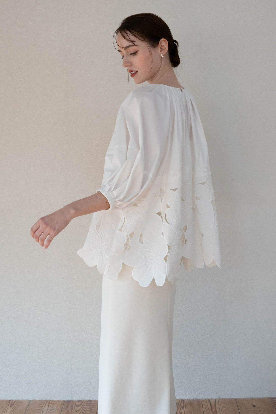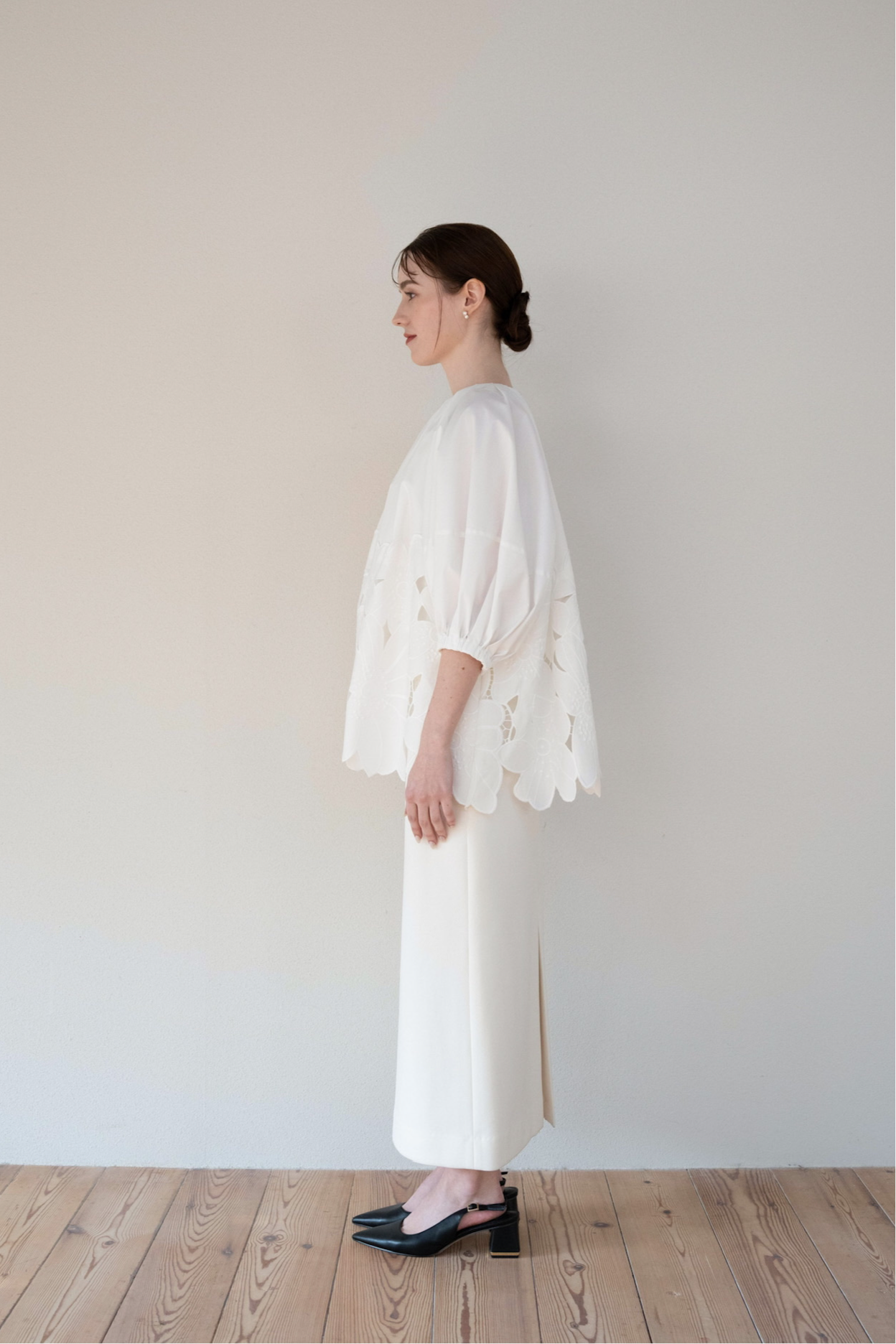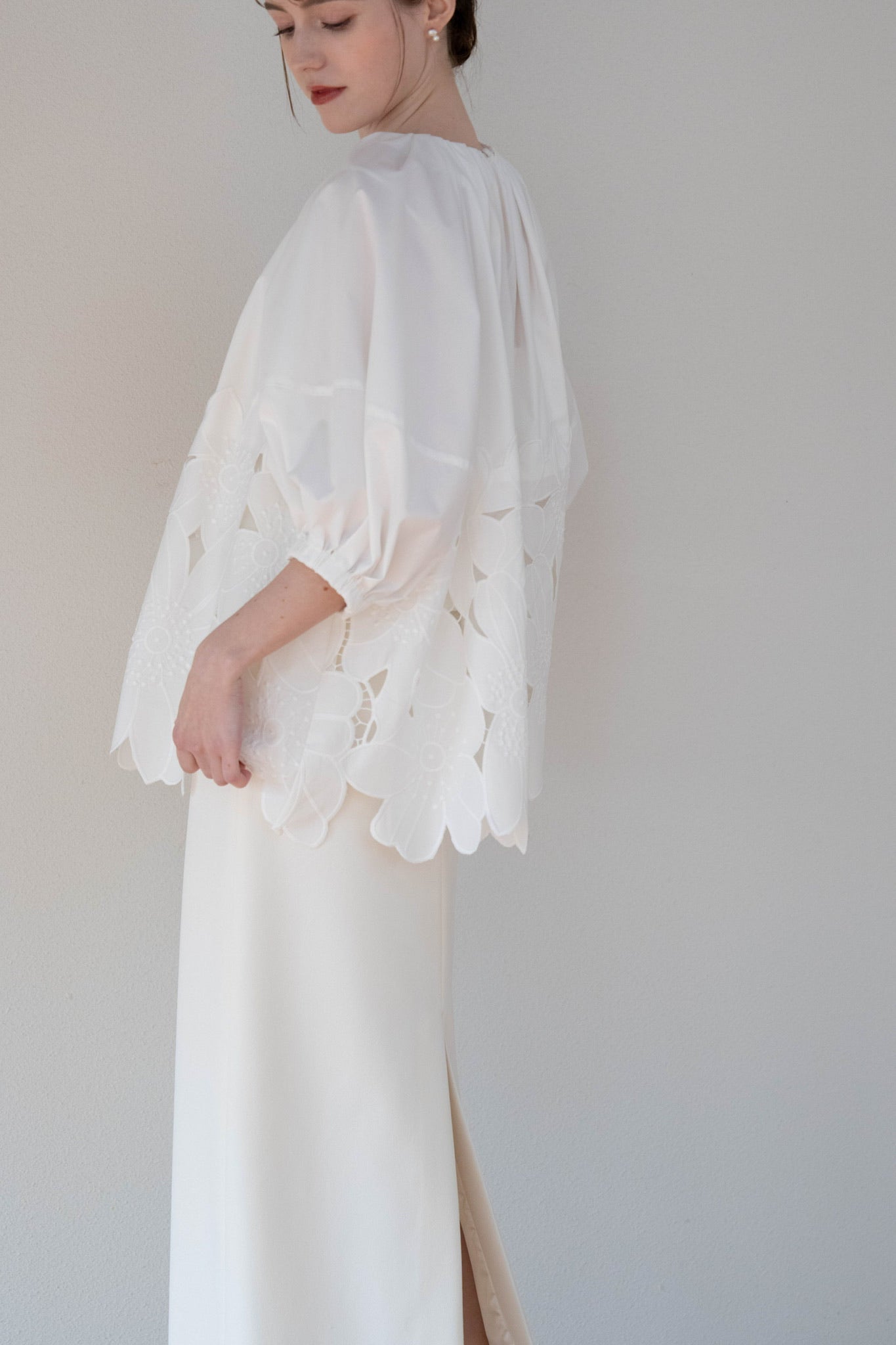 裾デザインは、花柄のシルエットがより映えるディティールが目を惹くポイント。