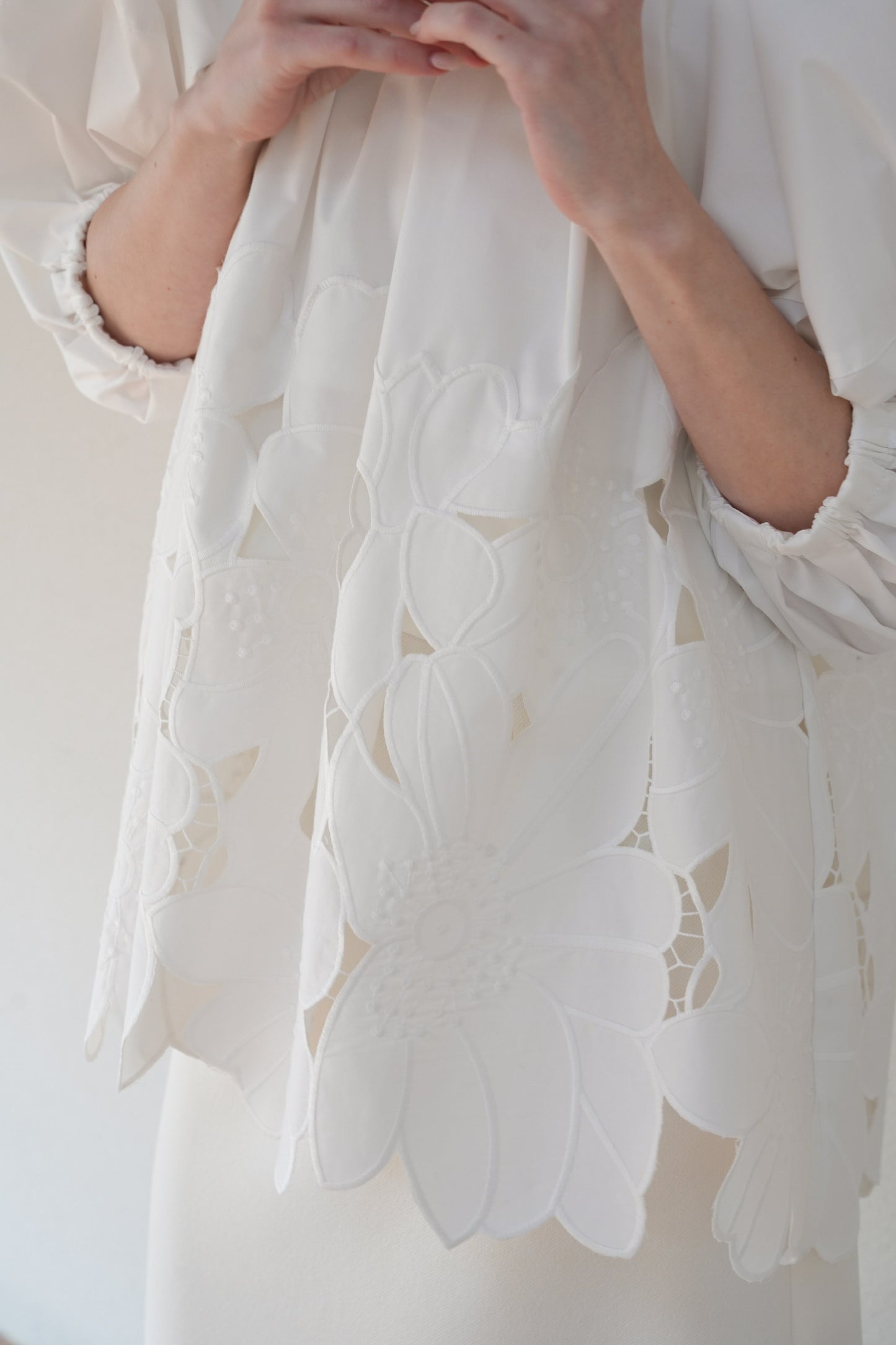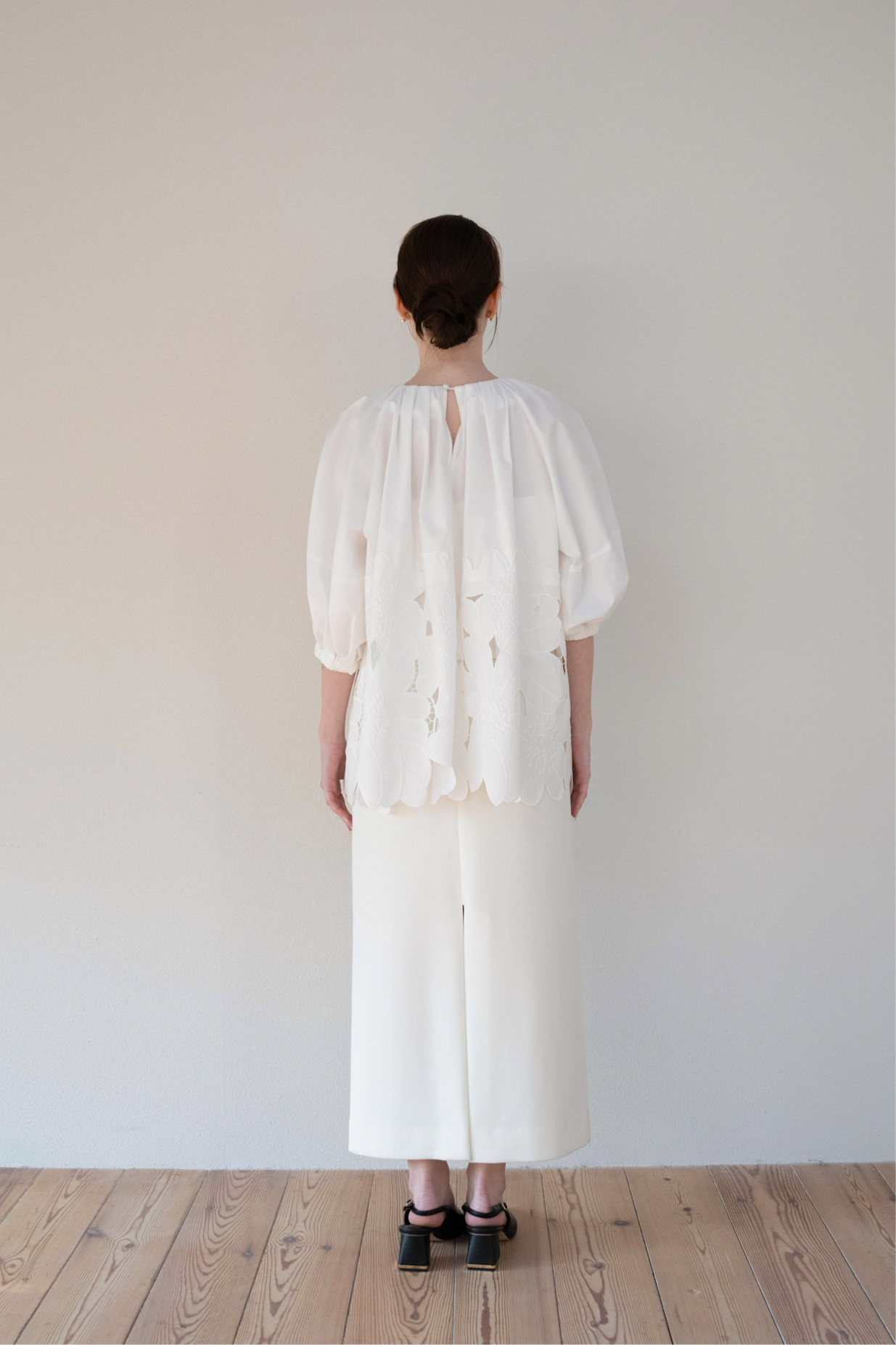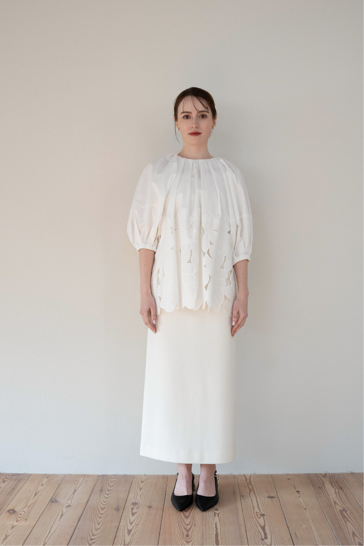 裾デザインは、花柄のシルエットがより映えるディティールが目を惹くポイント。