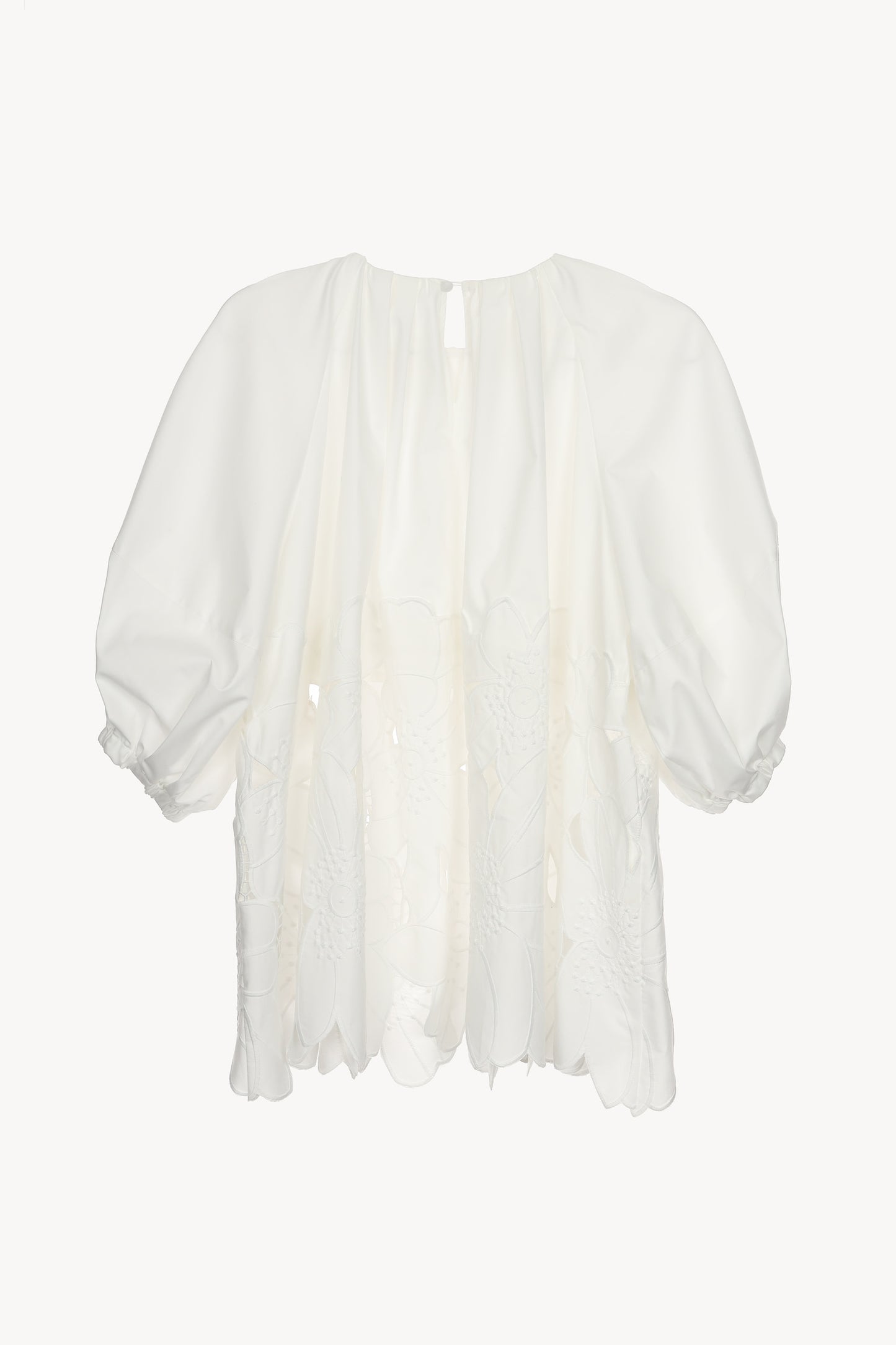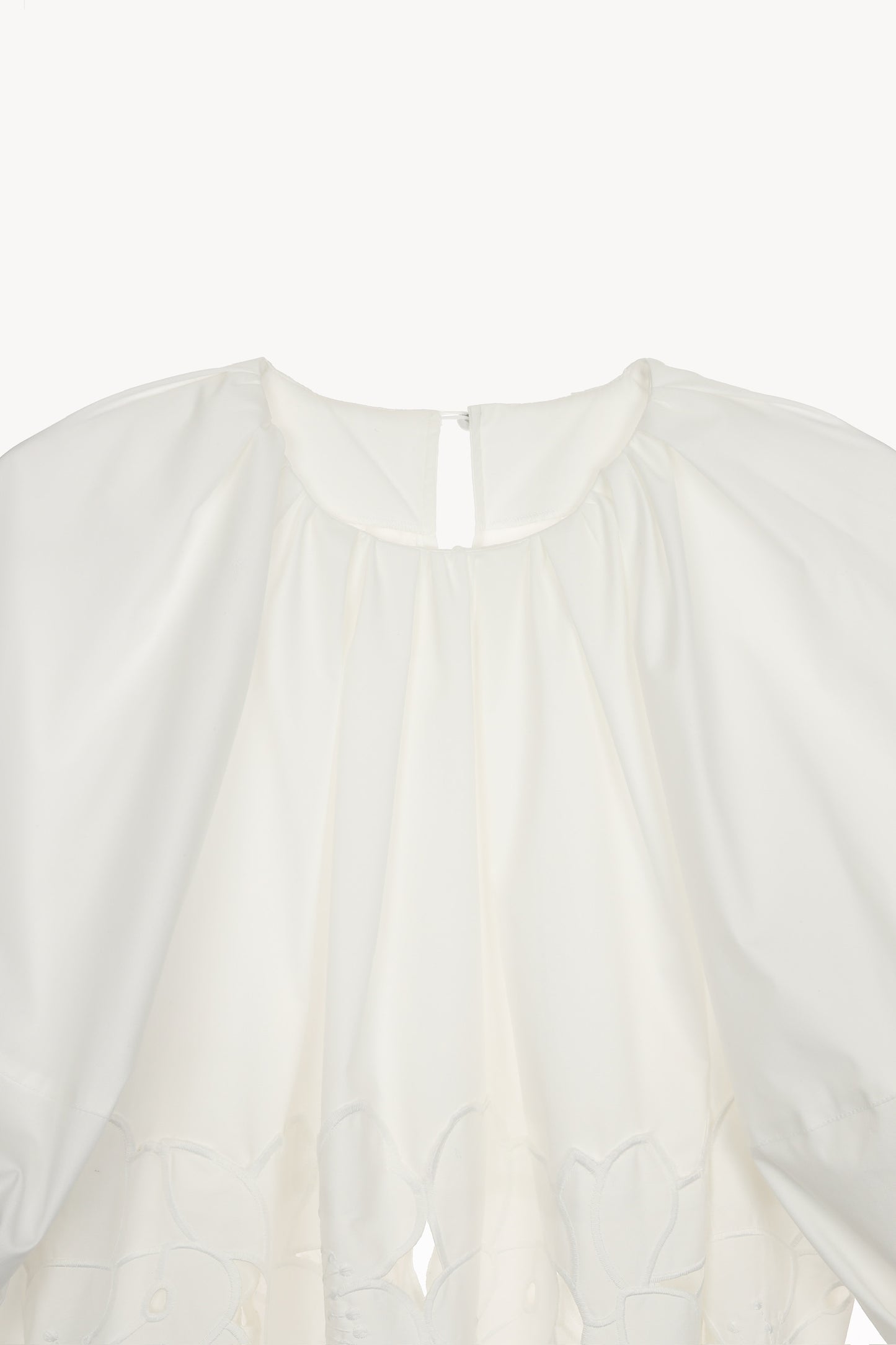 花柄のレースの切り替えがアクセントなボリュームブラウス。
