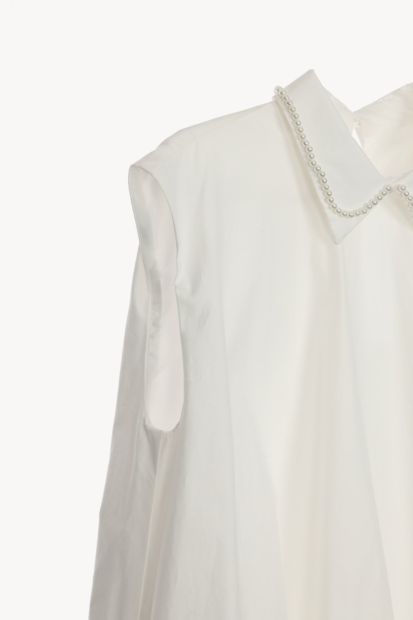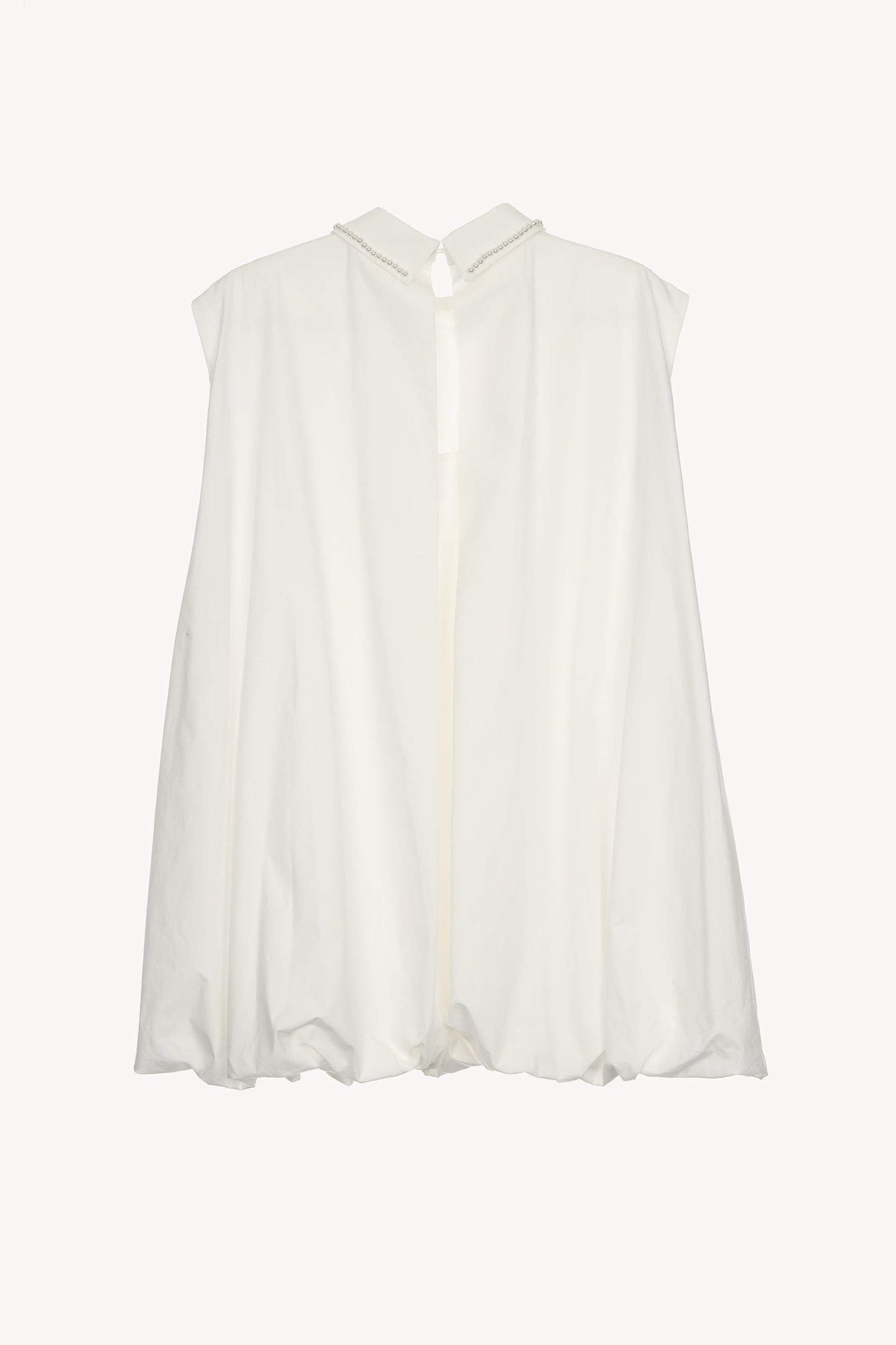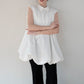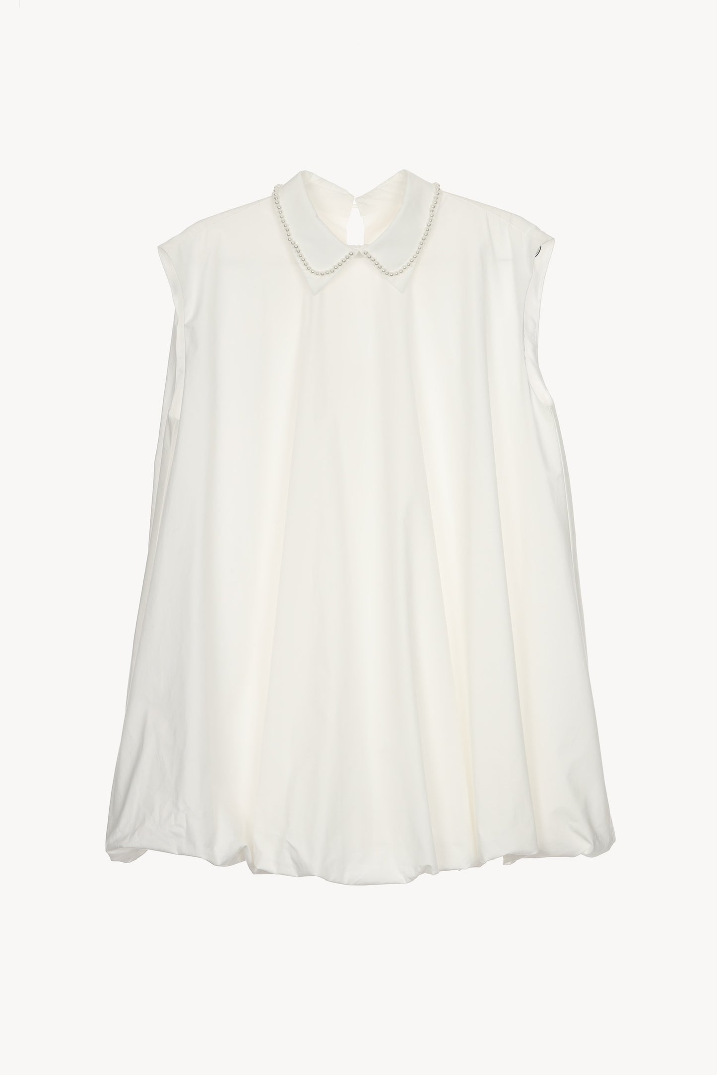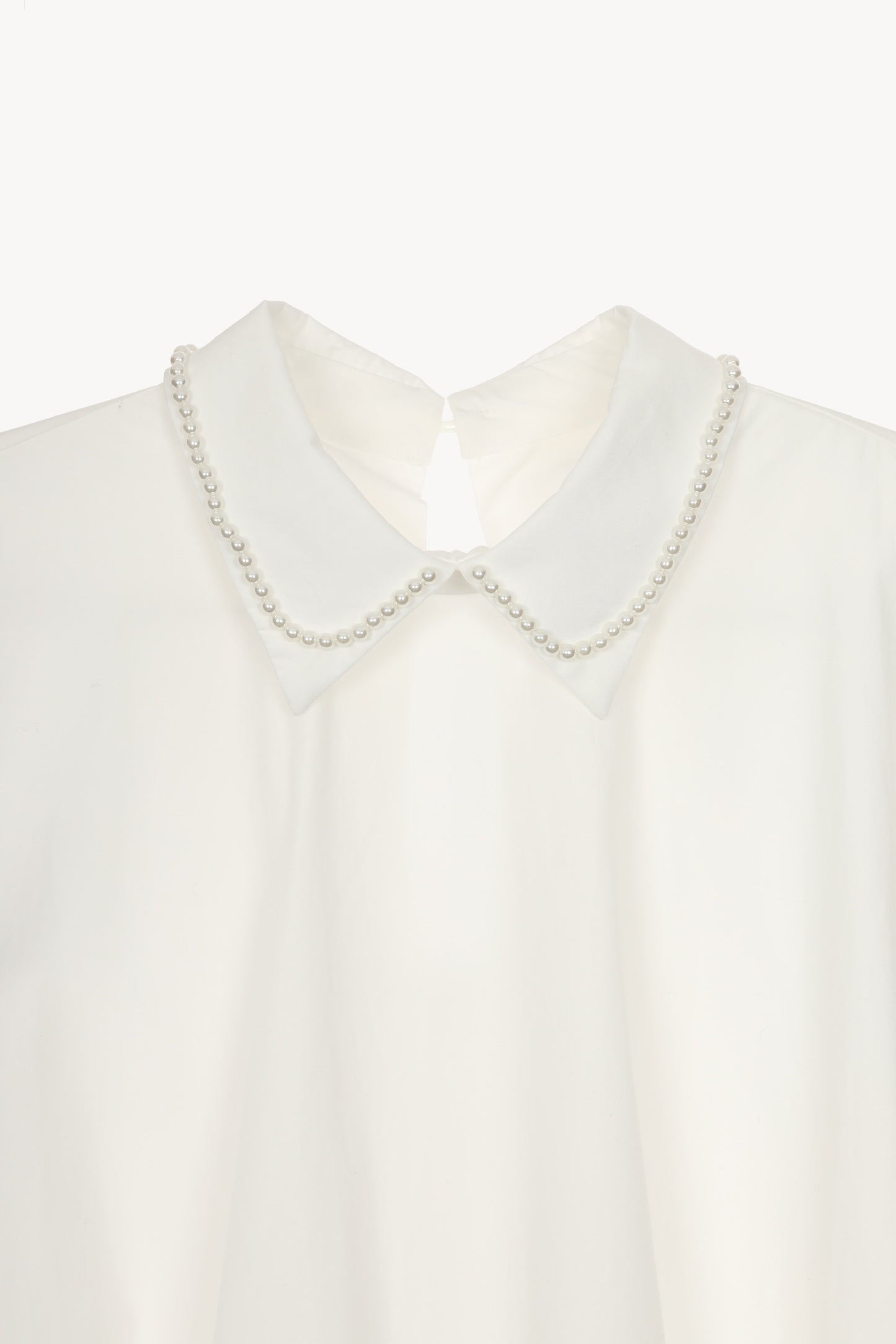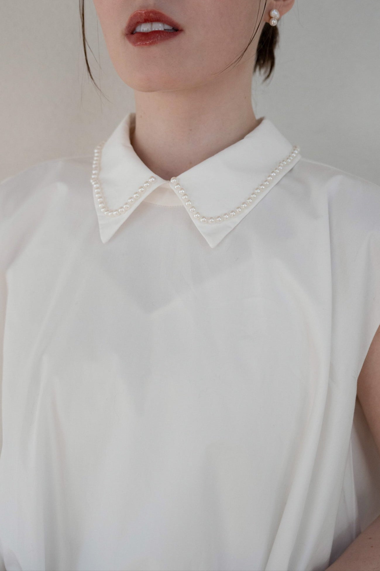 襟元にパールラインを施した一枚で着映えするバルーンシルエットのブラウス。