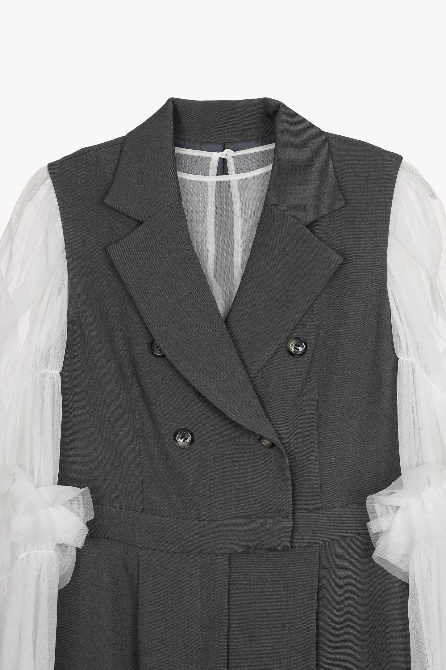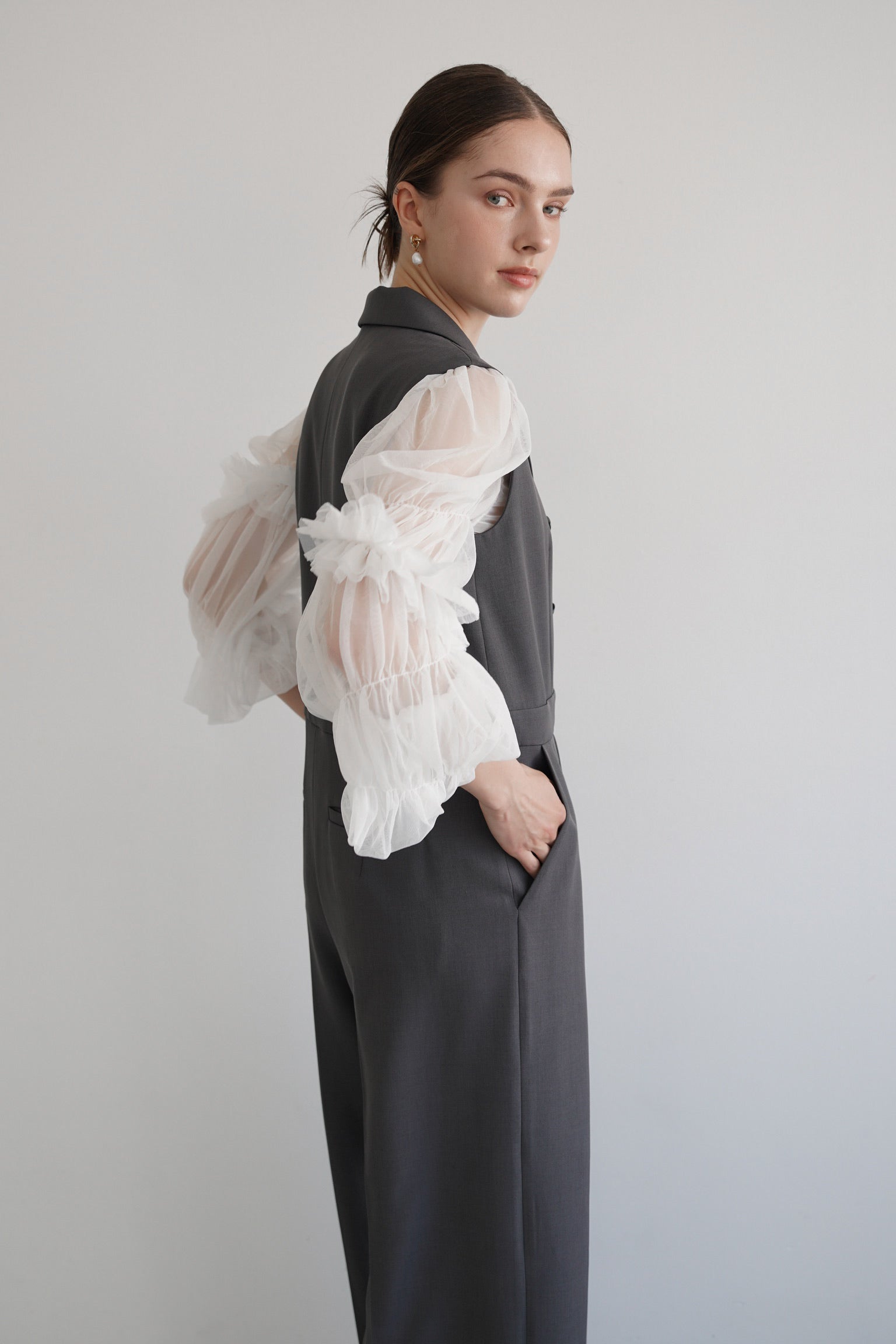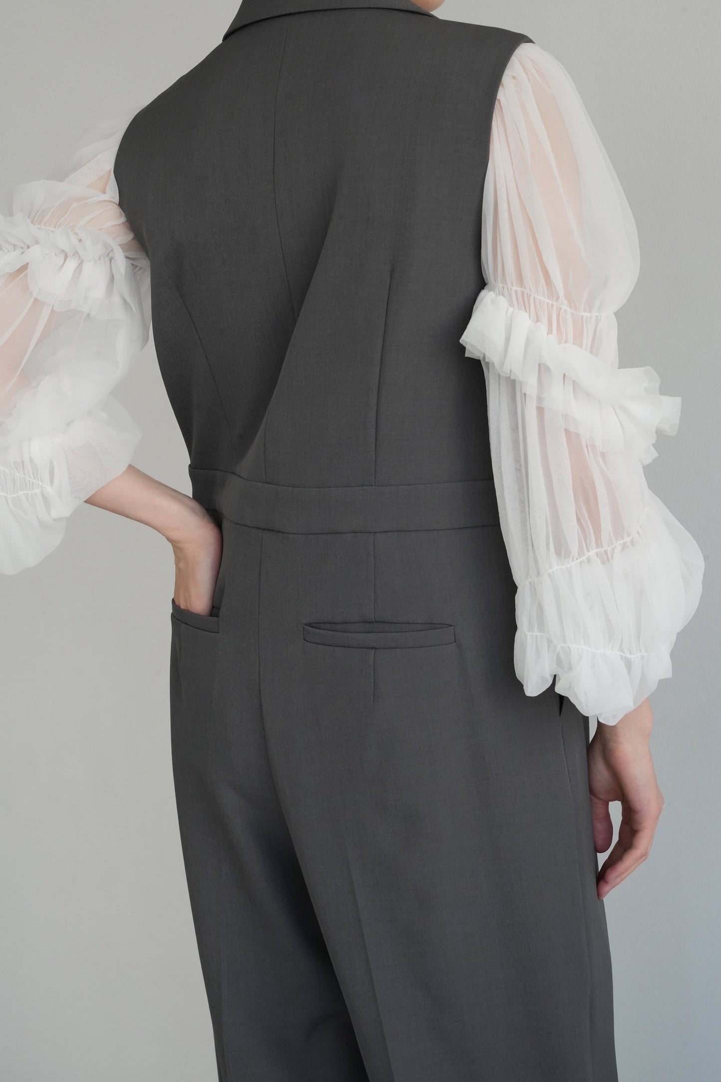 ブラウスは、ふんわりとしたチュールと