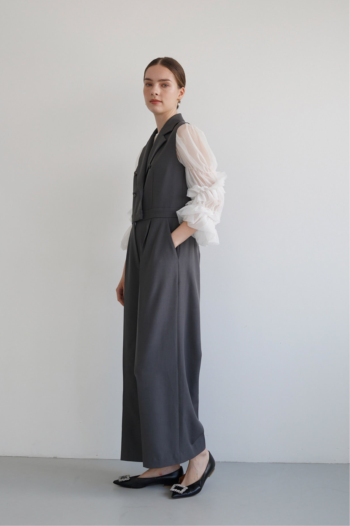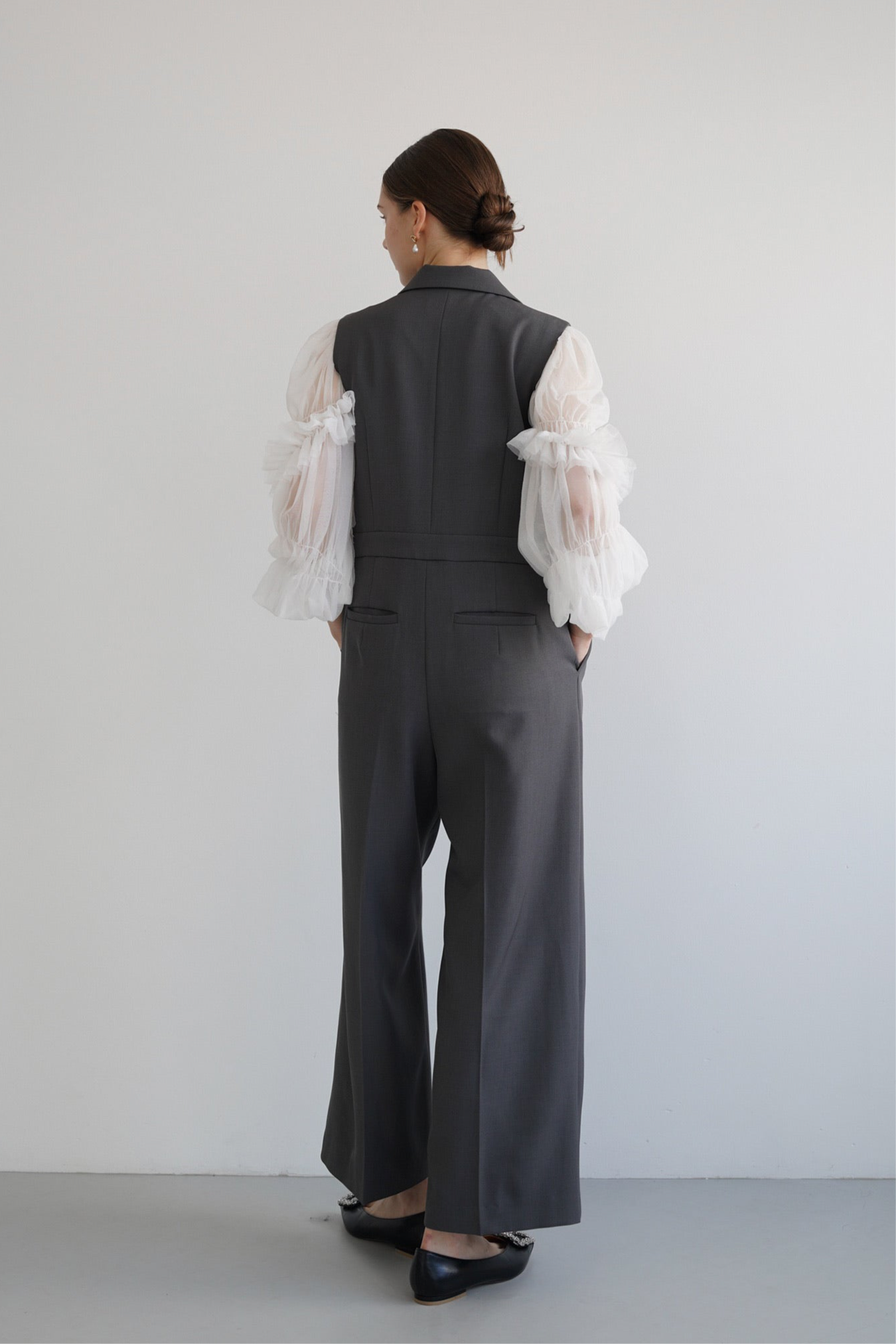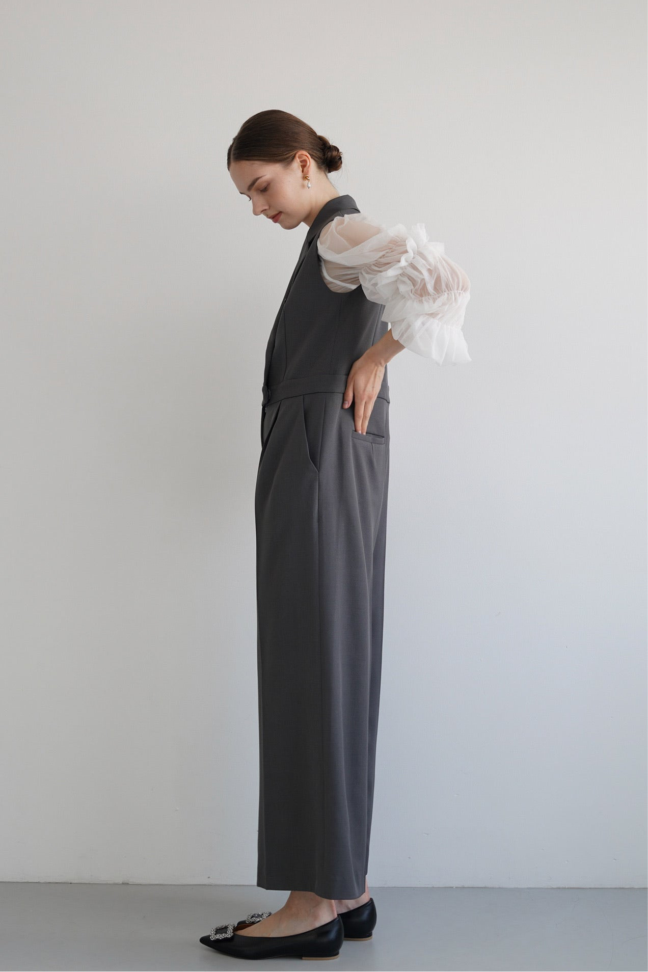 ギャザーディテールが女性らしさを引き立てます。