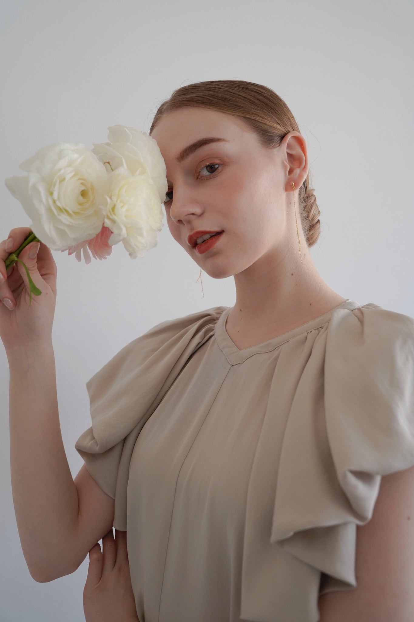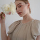 脇下から裾にかけて たっぷりとギャザーを寄せた