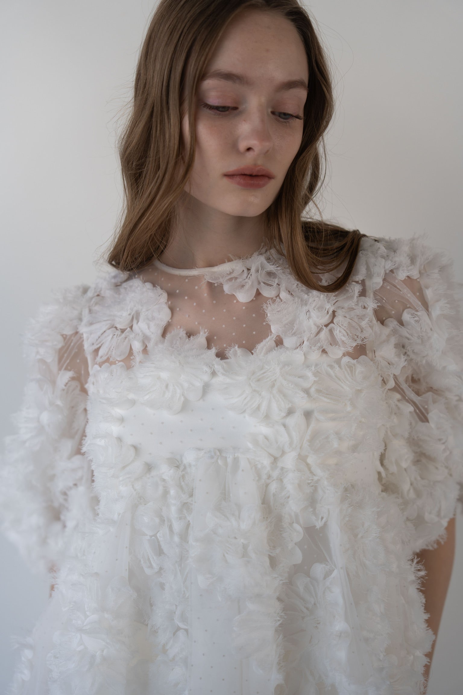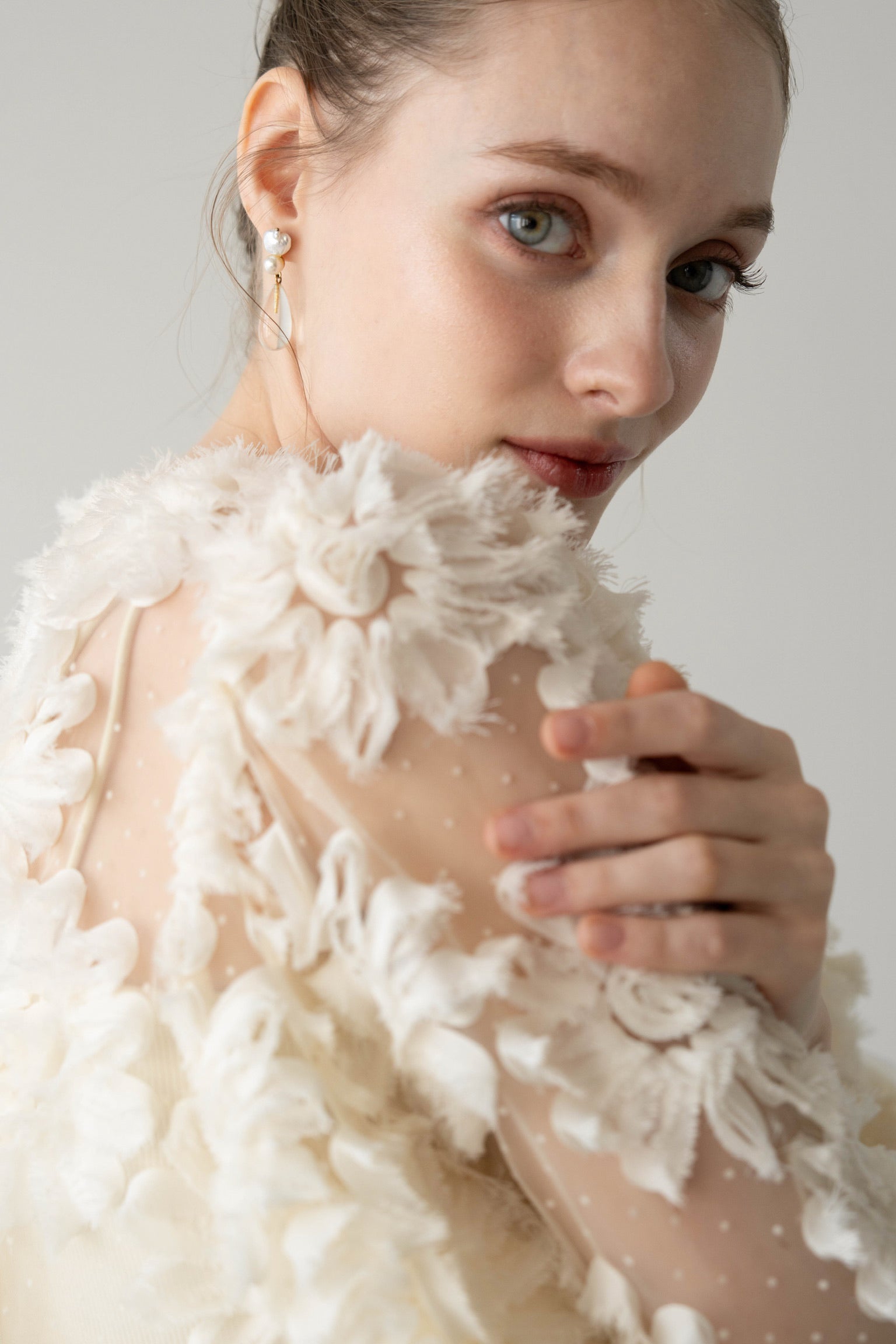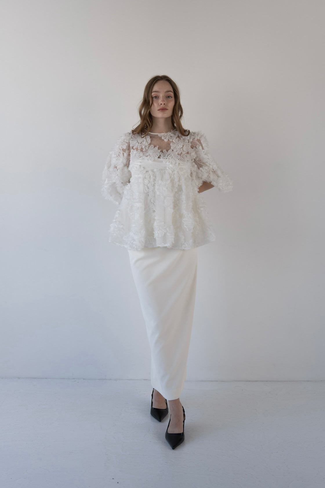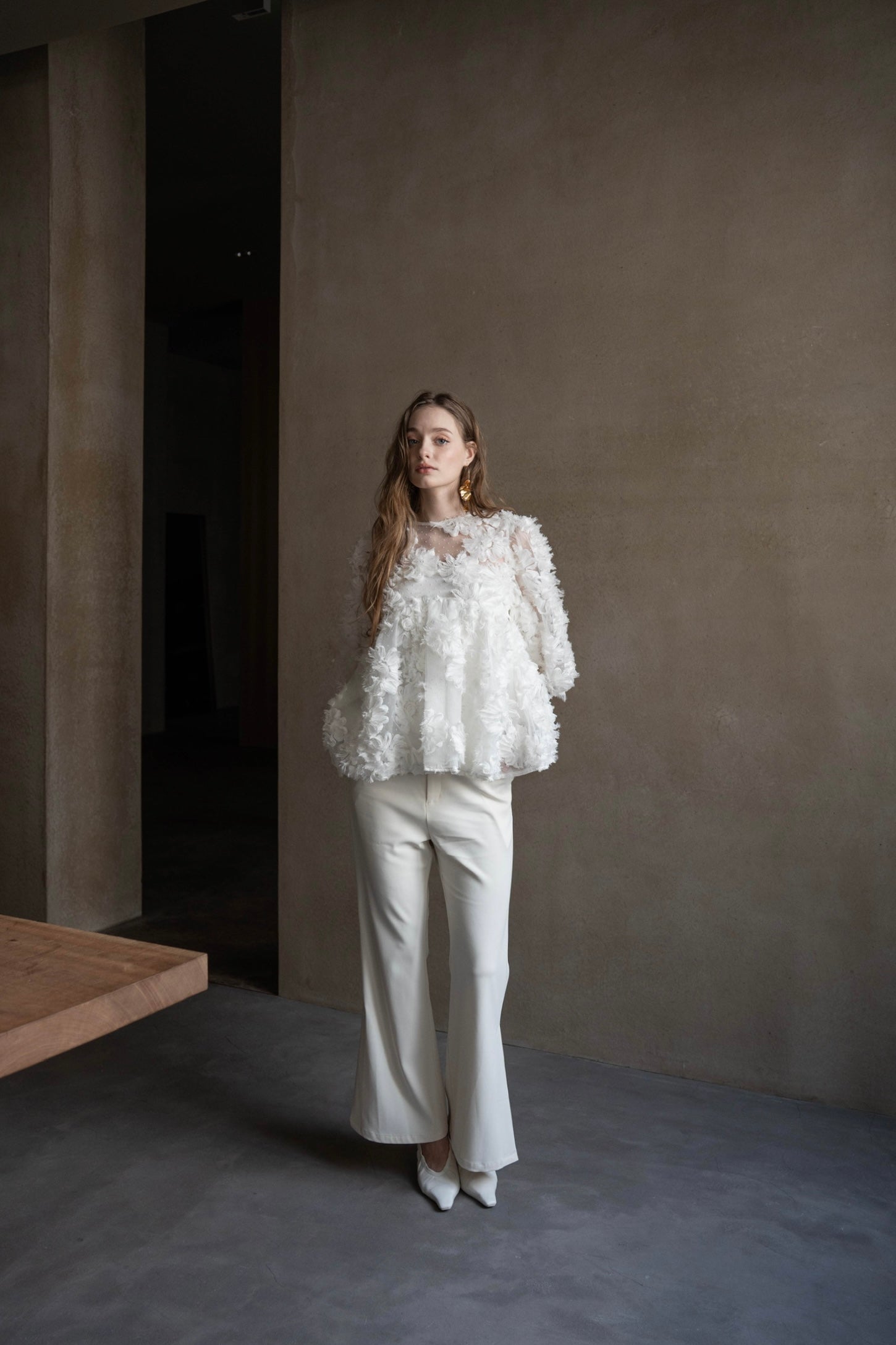 デザイン性と上品さが組み合わさり、唯一無二の華やかさを放つブラウス。