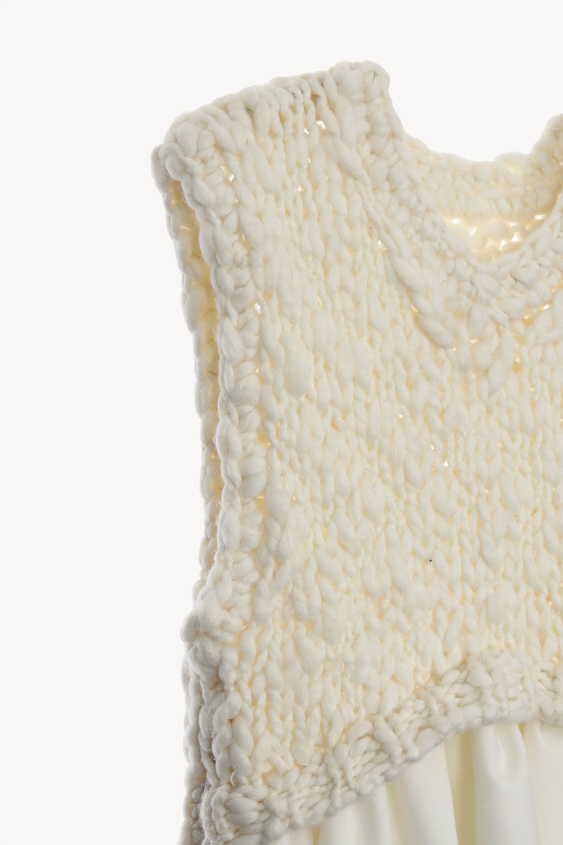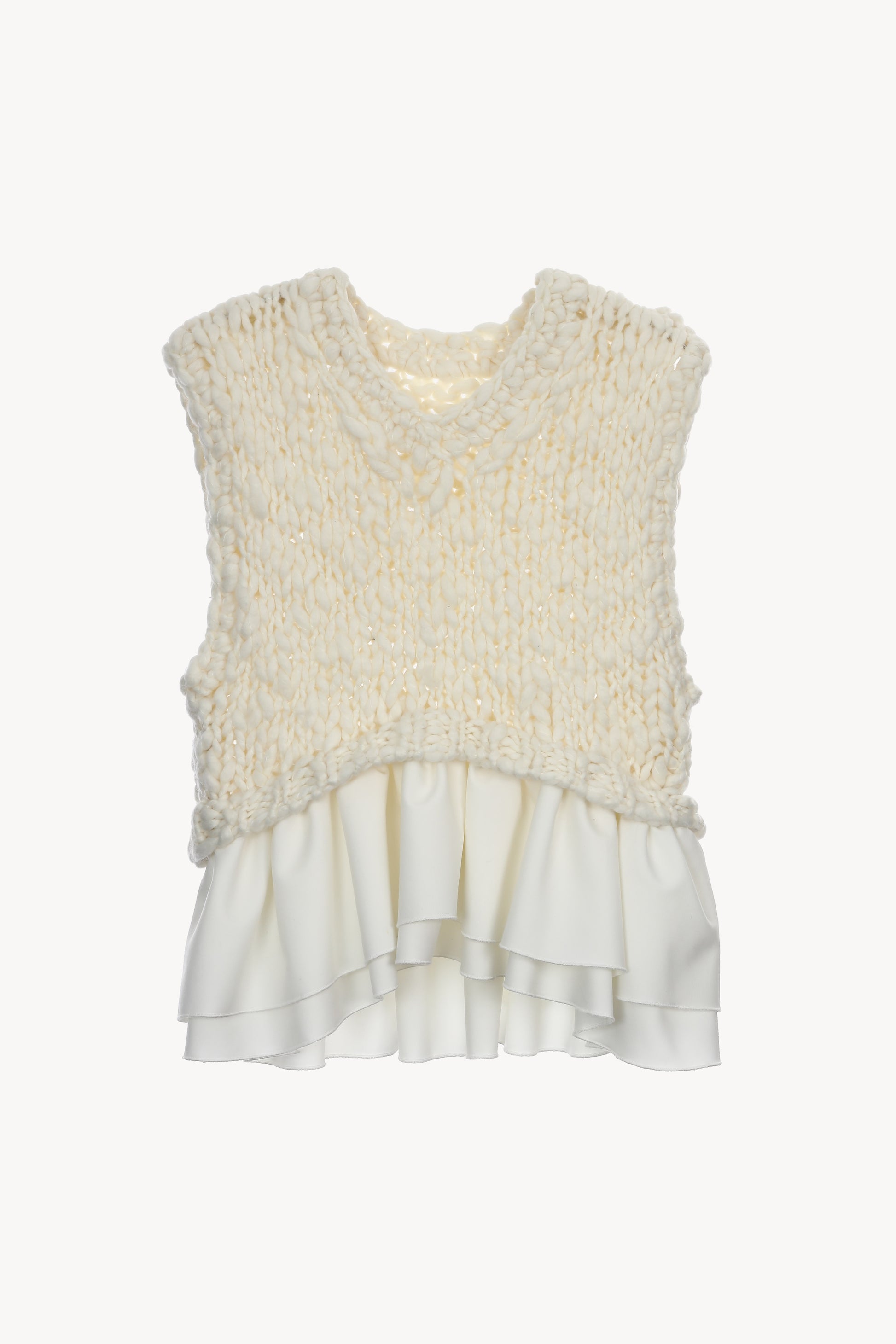 シンプルなボトムに合わせるだけで華やかなバランスに。