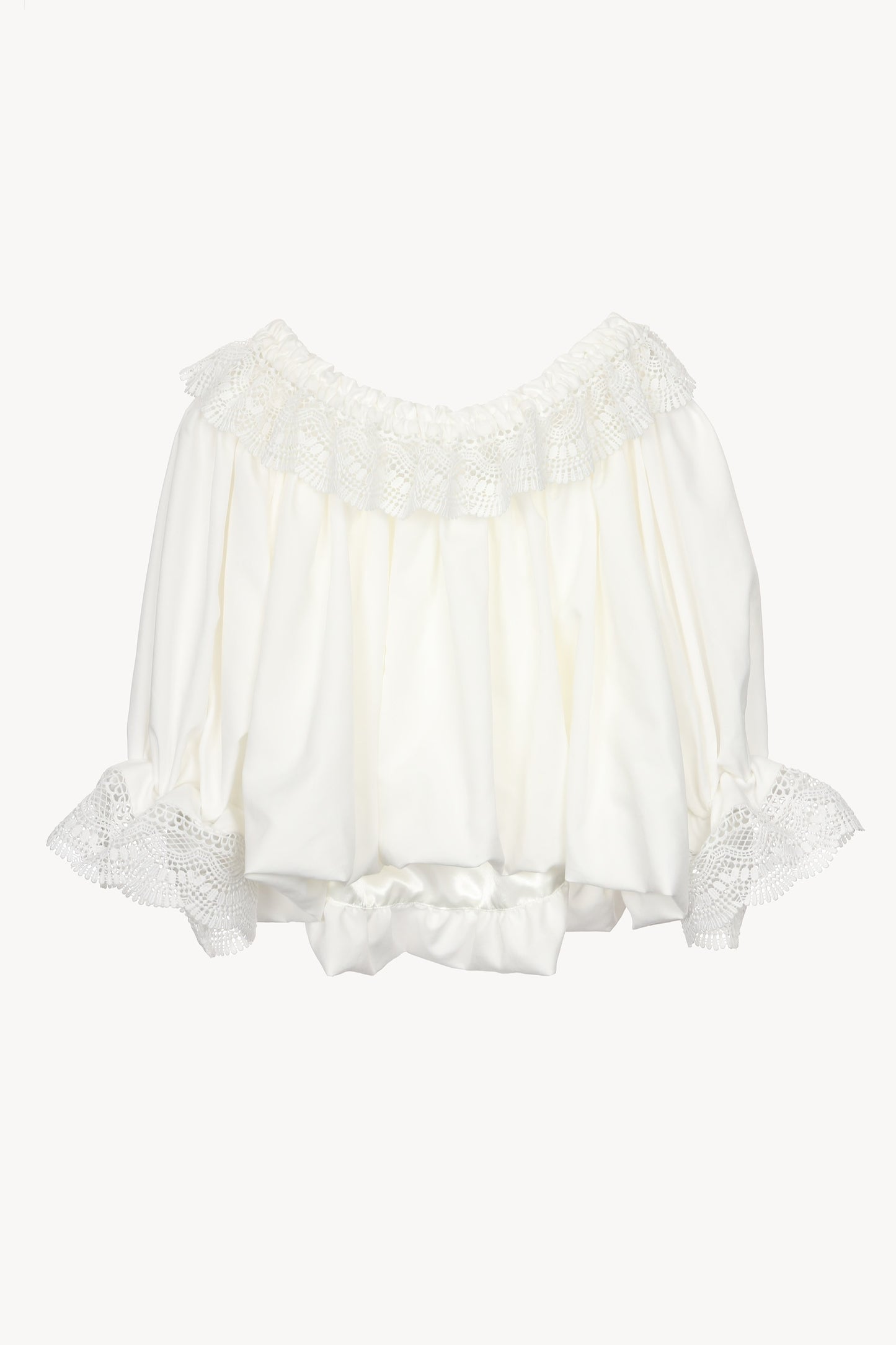 ハリのあるシャツ素材が華やかなサマーブラウス。