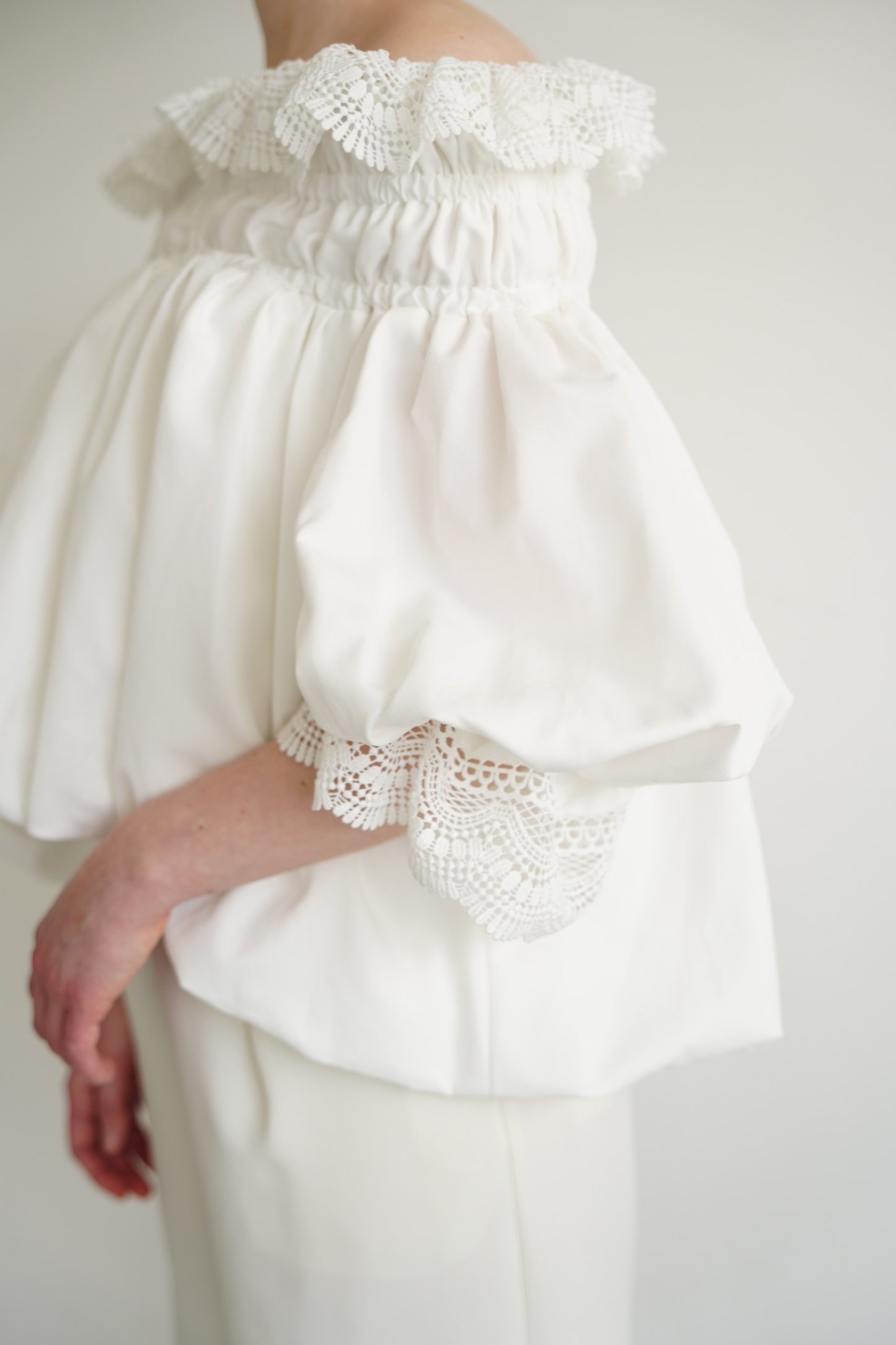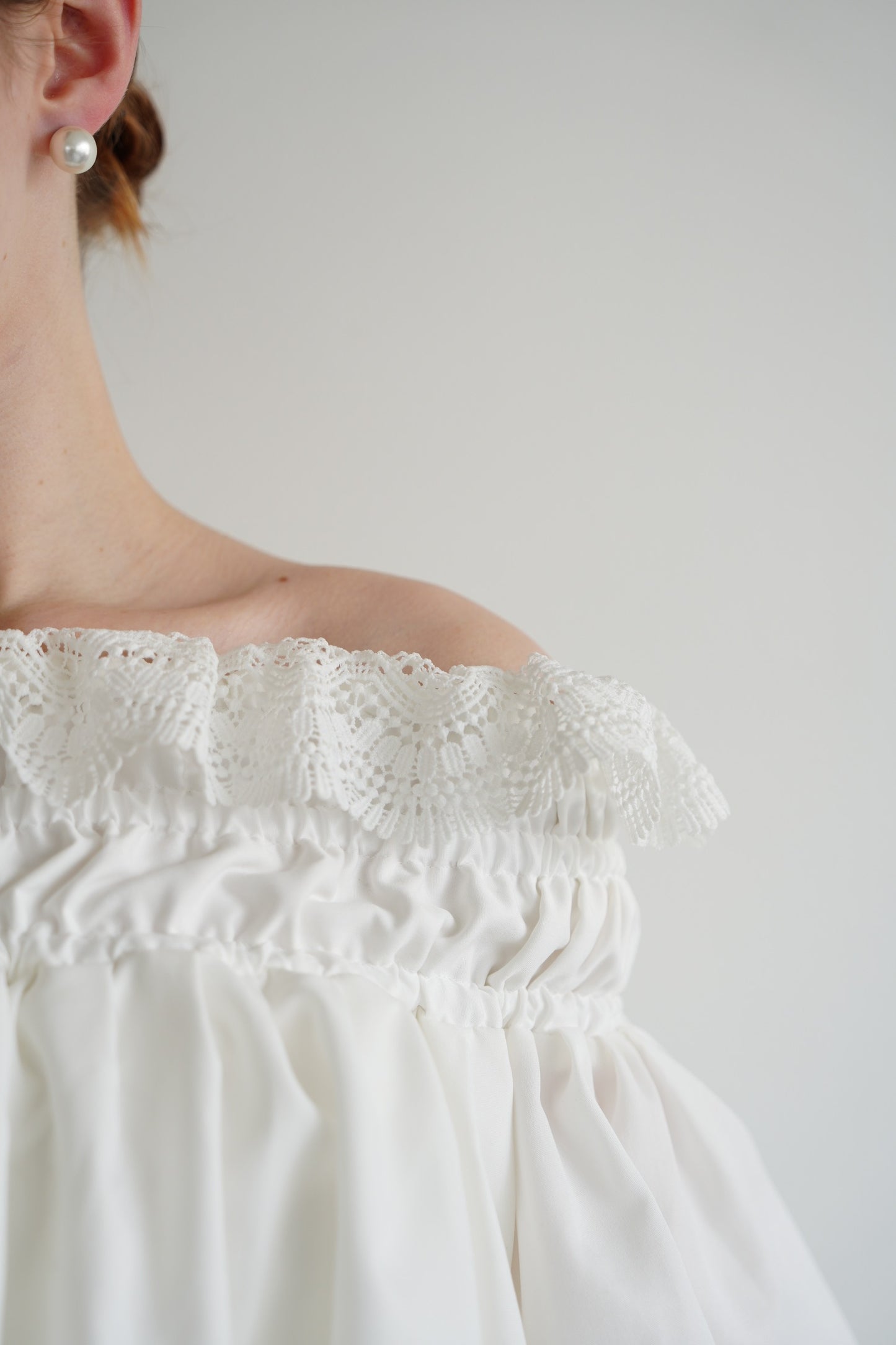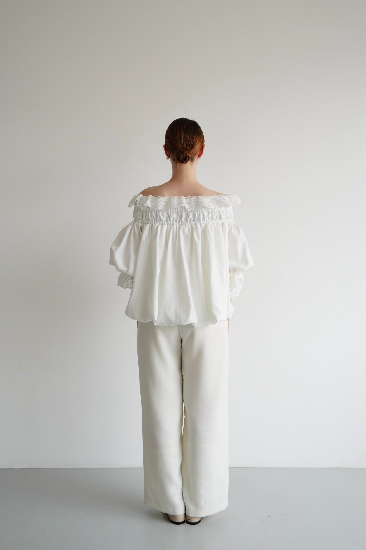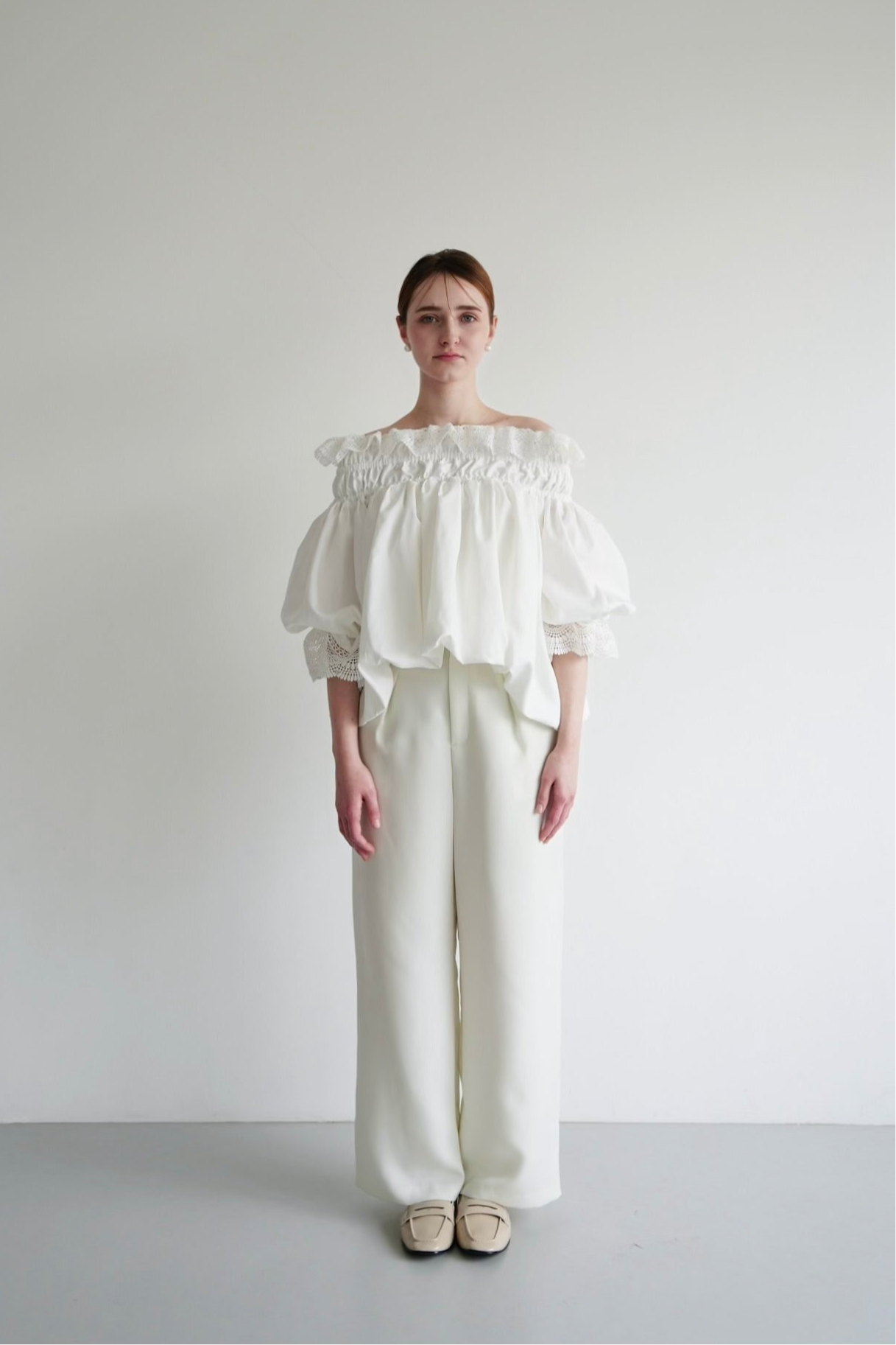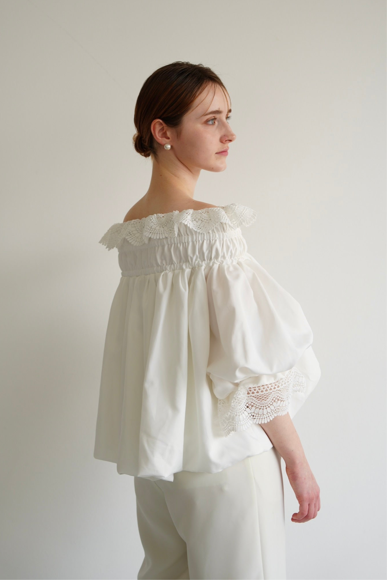 ネック周りはゴム仕様で、 オフショルダーでも安心して着用いただけます。