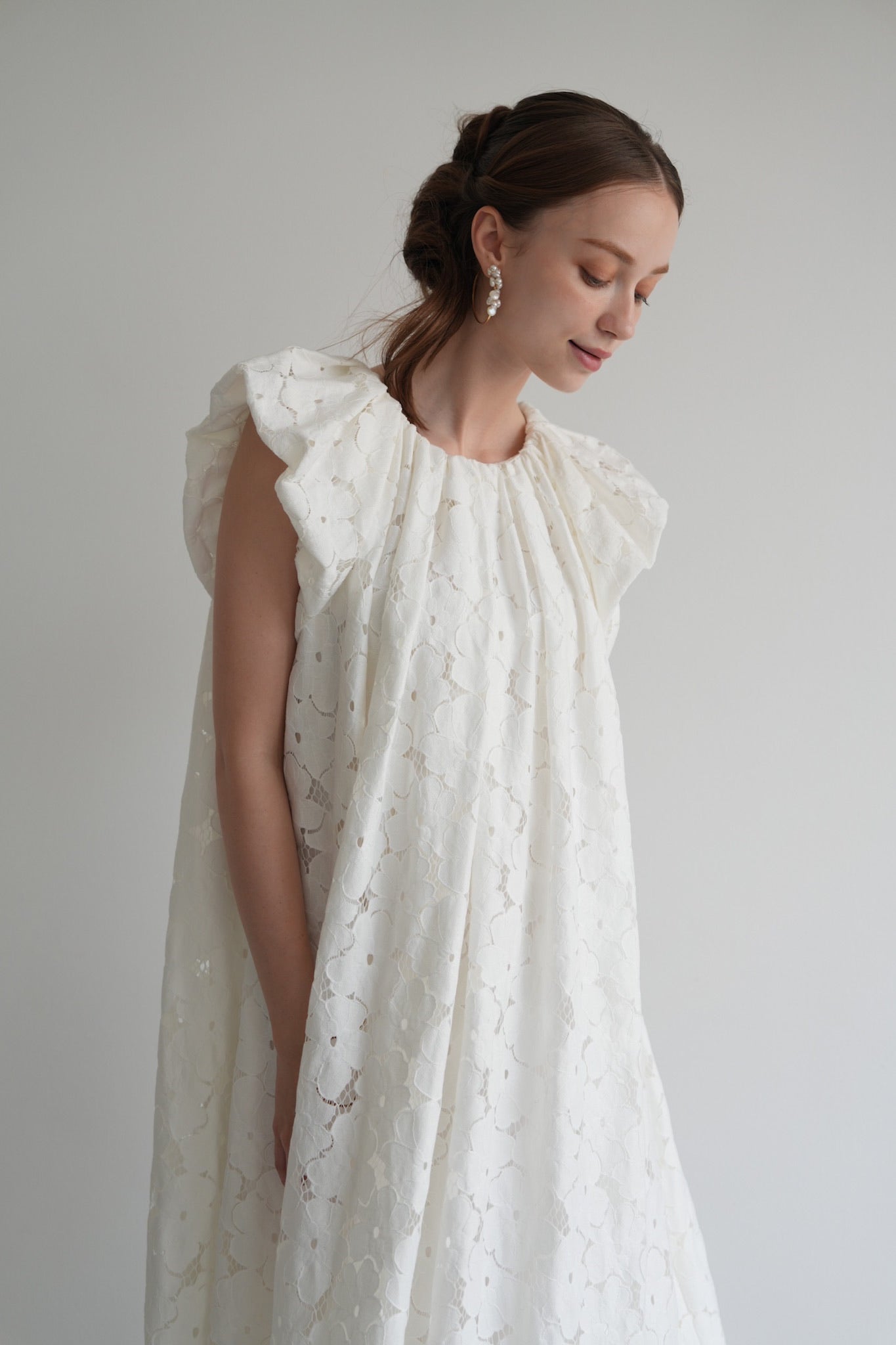 ふんわりと広がるフレアシルエットがエアリーな華やかさを演出。