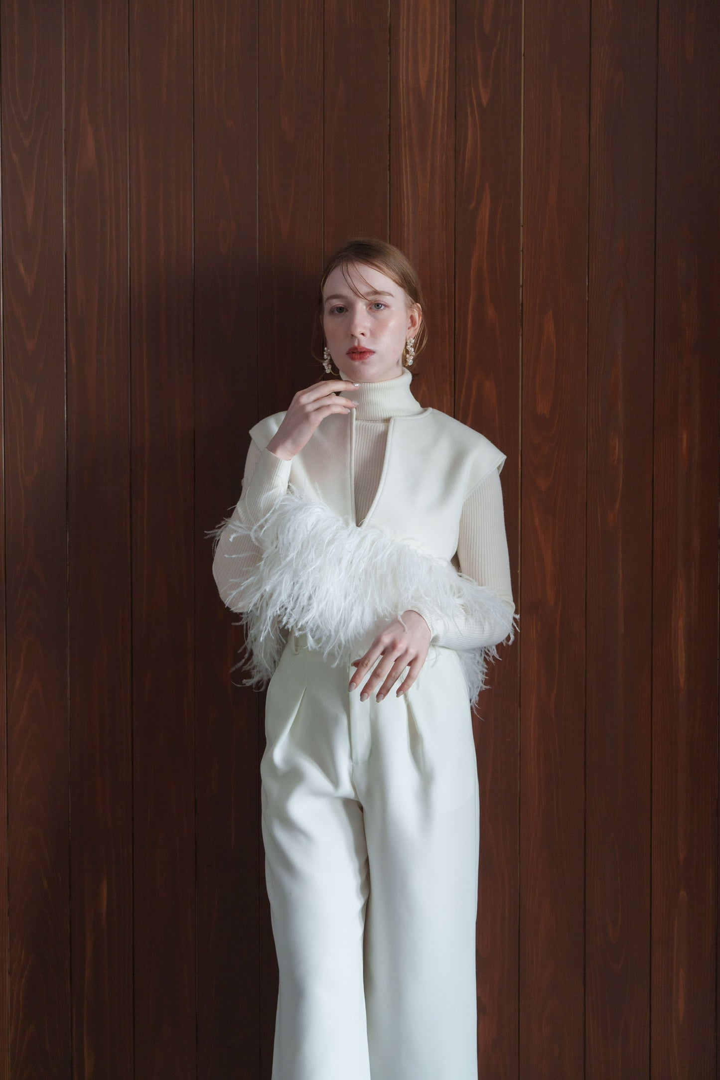美しいカーブと絶妙なサイズ感でゆるっとモードな着こなしに仕上がる1枚です。