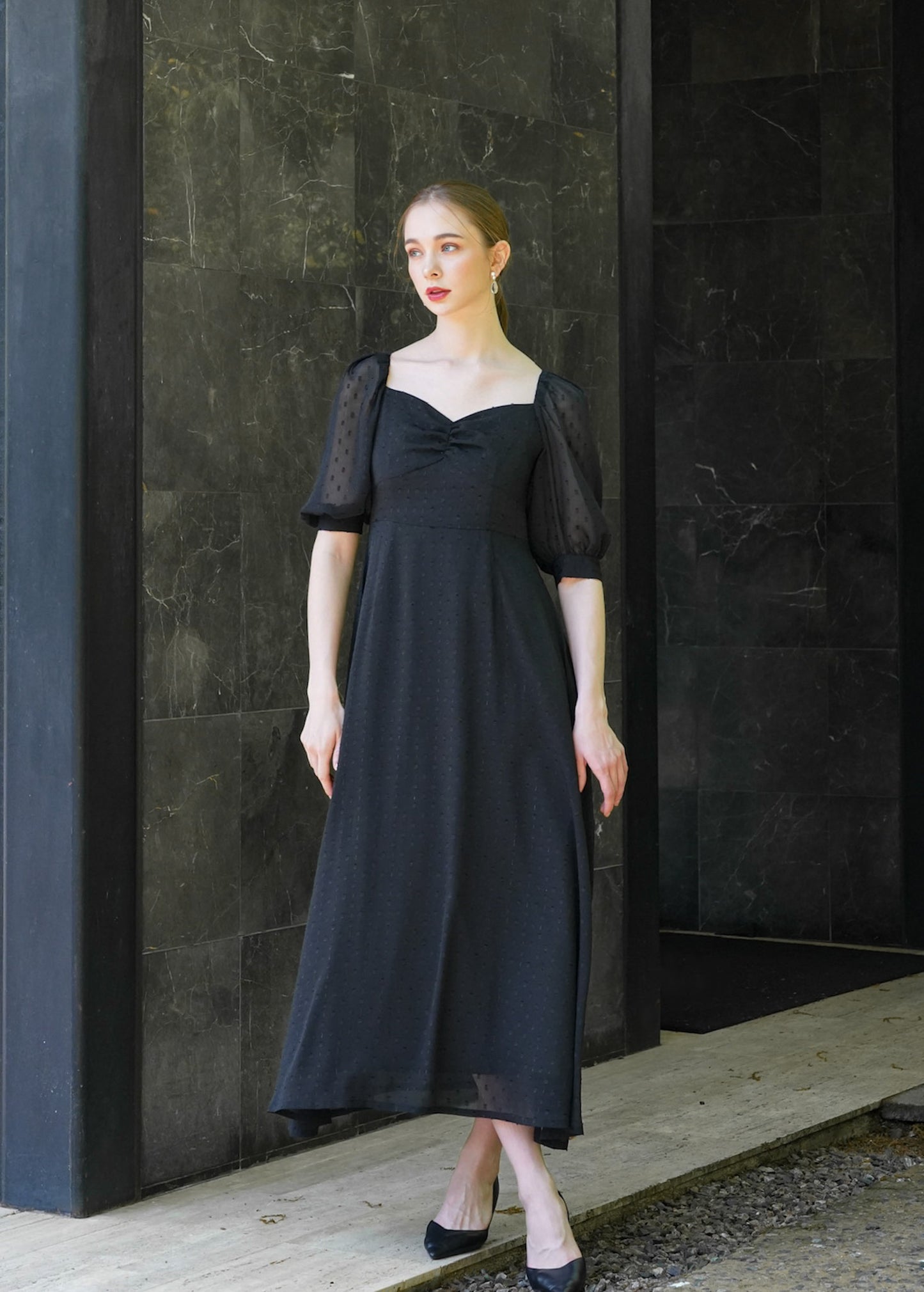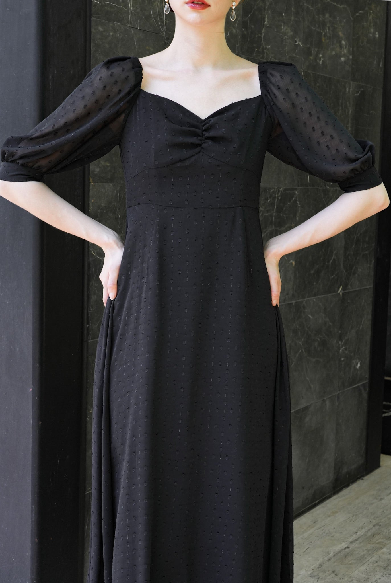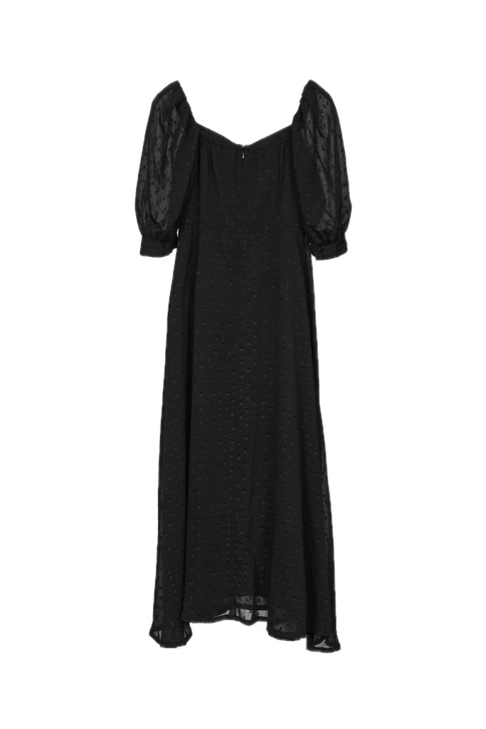 涼しげな立体感のあるドット生地を使用した 高級感を感じるフレアワンピースの登場。