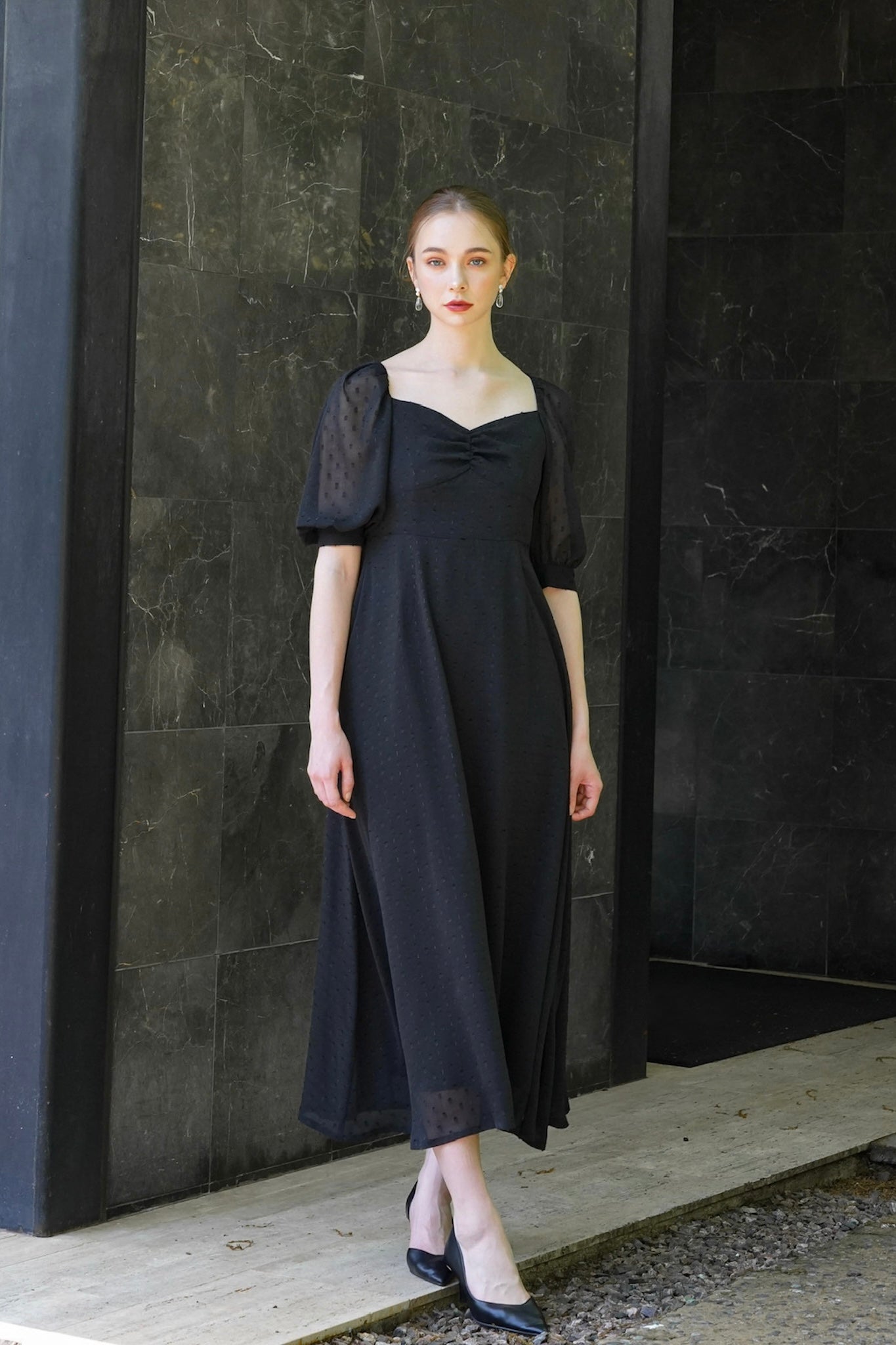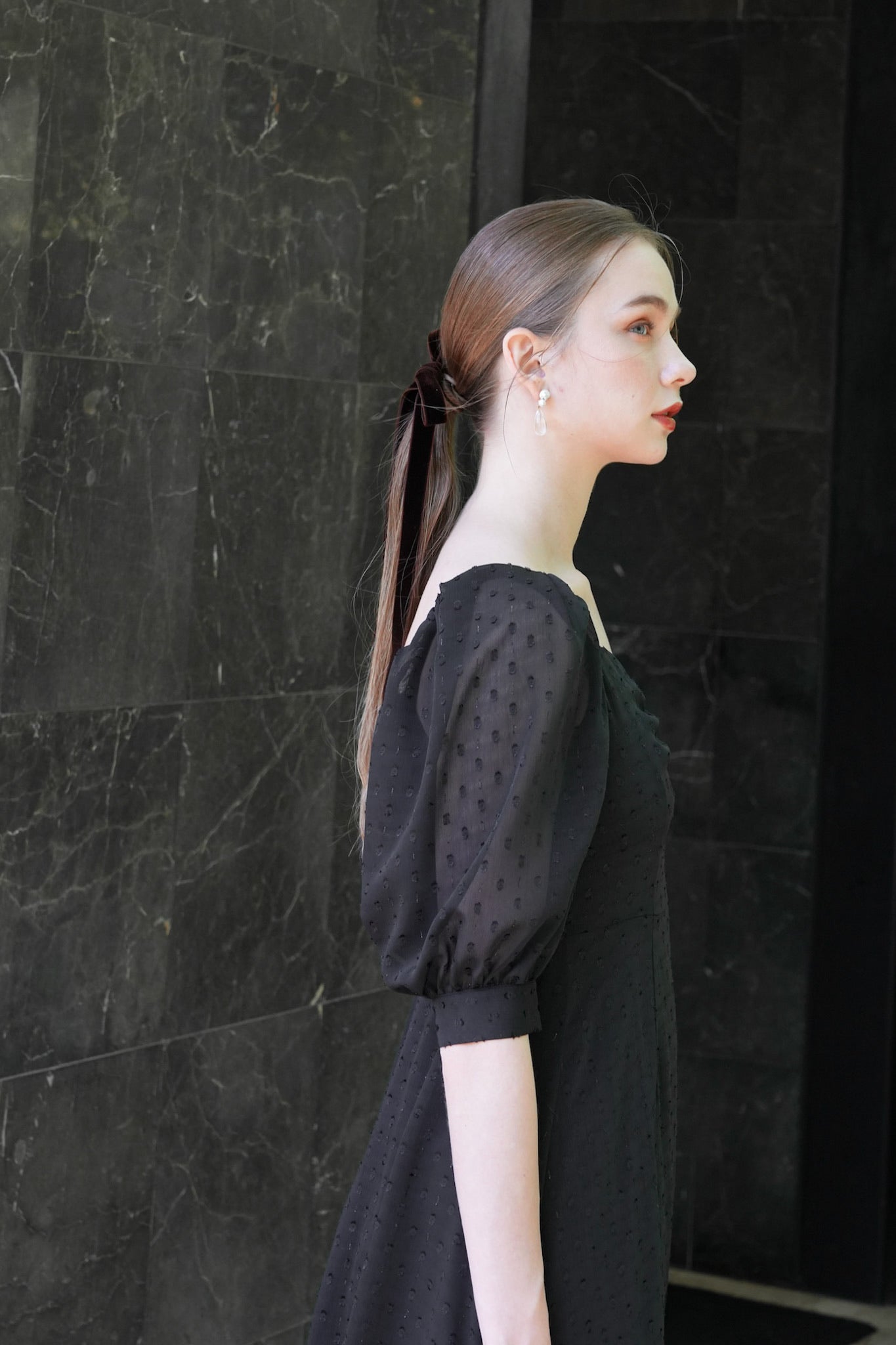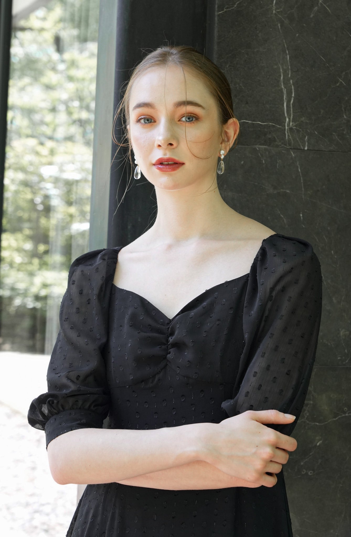 涼しげな立体感のあるドット生地を使用した 高級感を感じるフレアワンピースの登場。