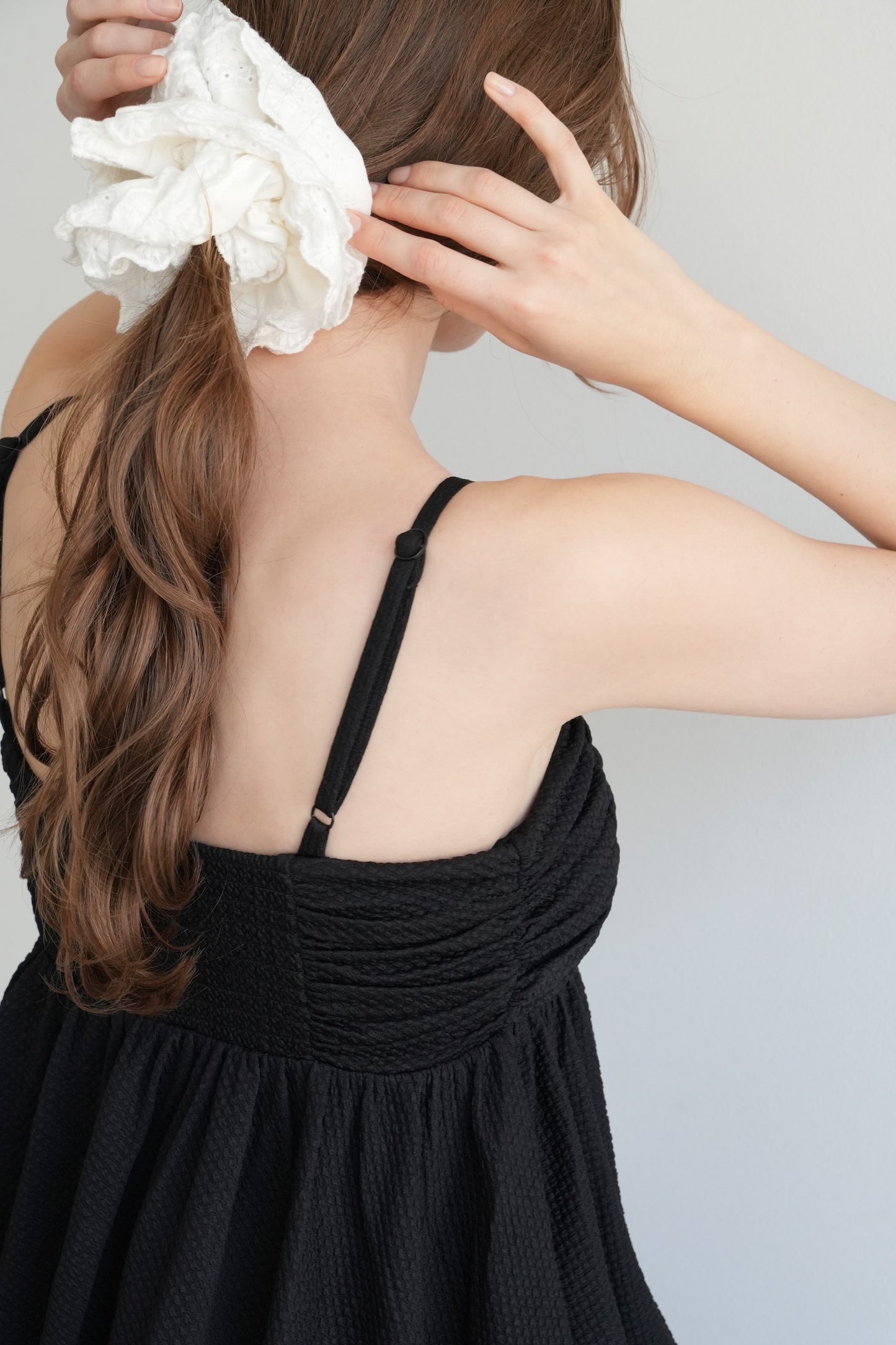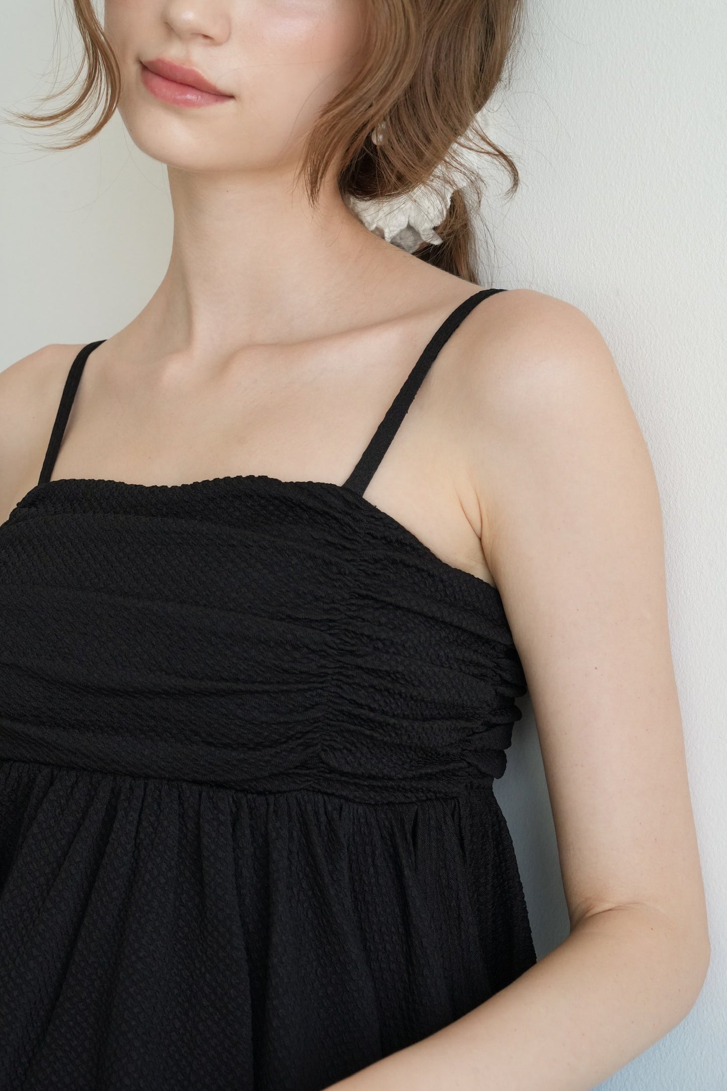 ウエスト下からふんわり広がるシルエットが体型カバーにも嬉しい一枚。