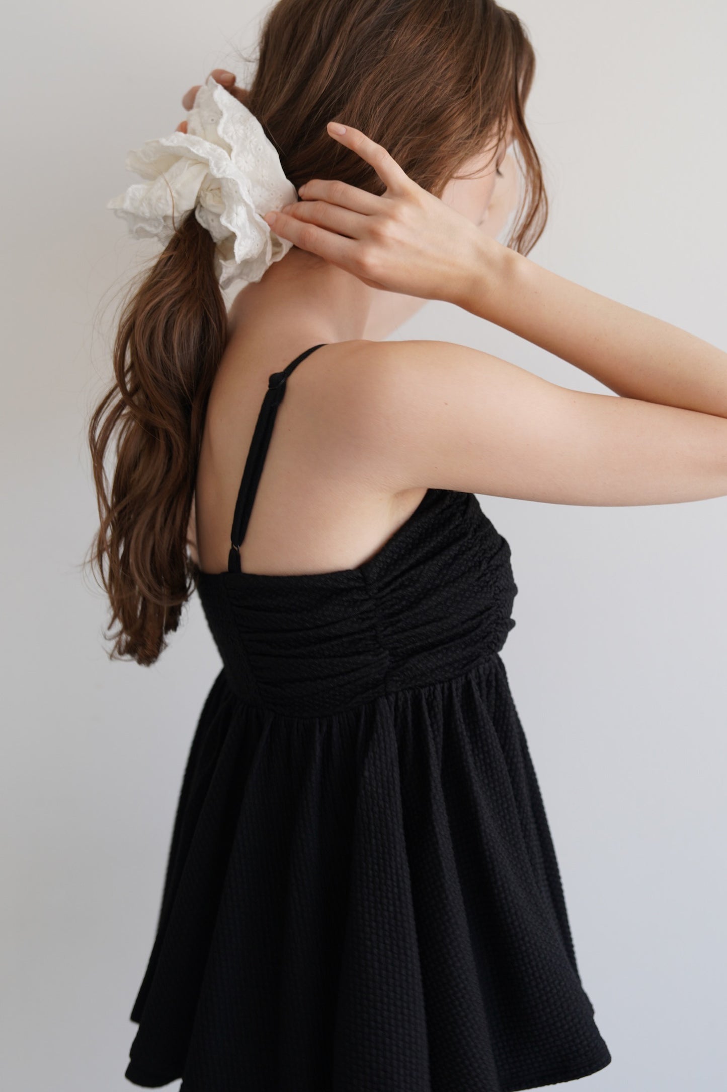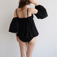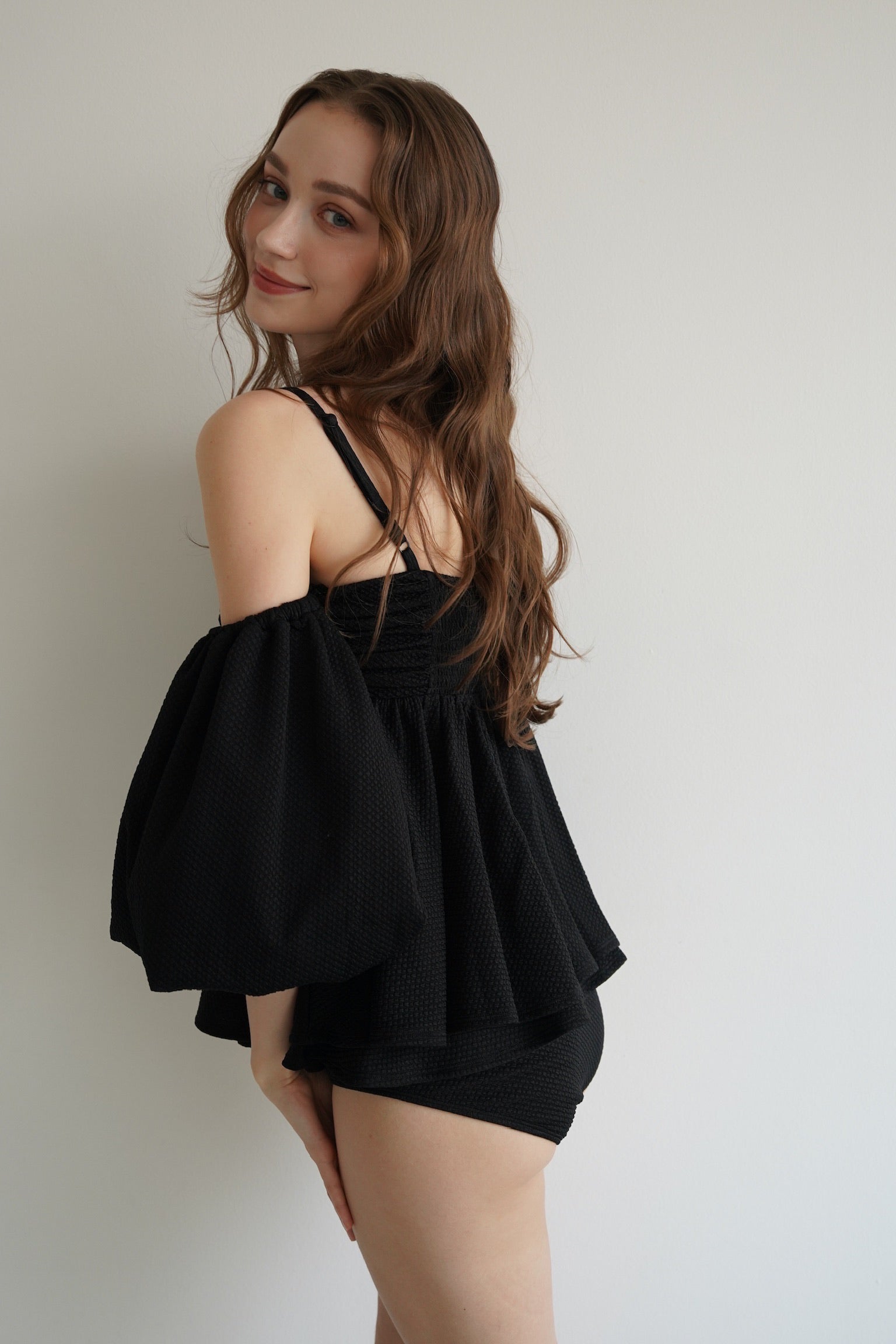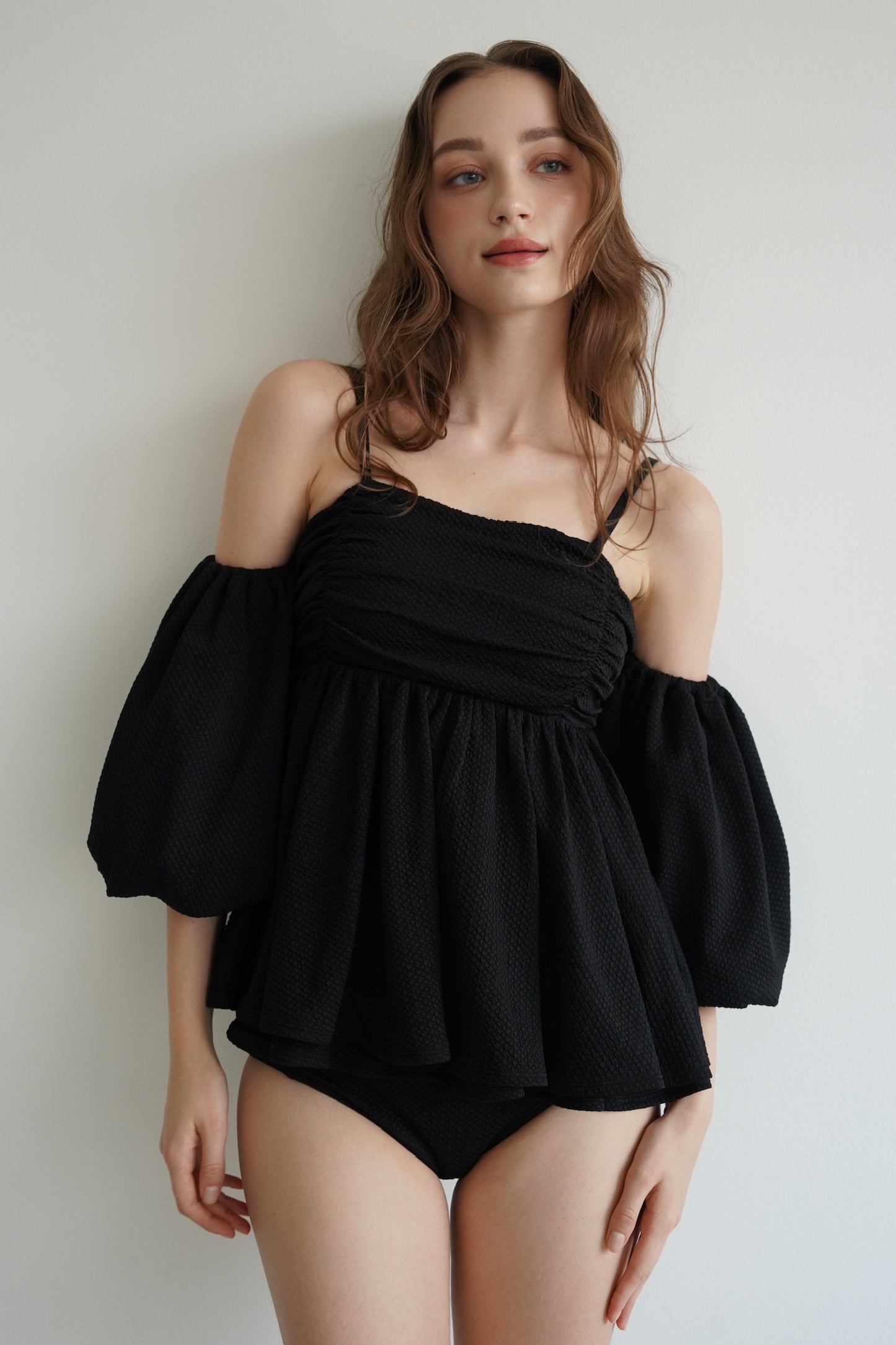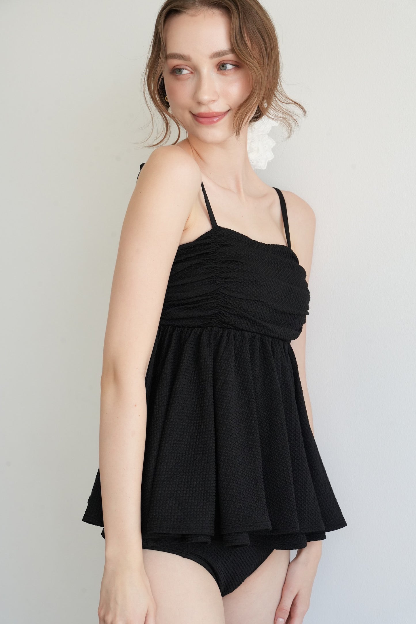 フェミニンで可憐な印象を叶える、フレアシルエットのスイムウェア。